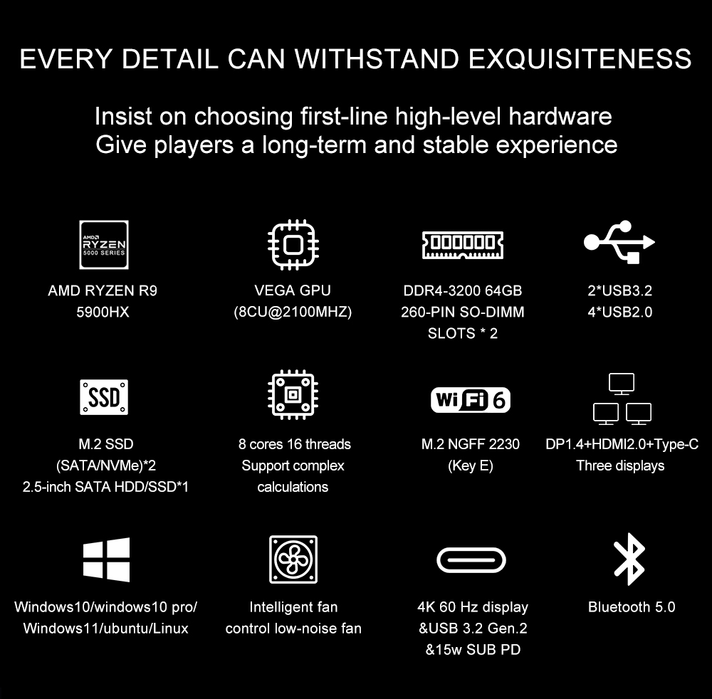 CPU | Onboard AMD R9 5900HX | |