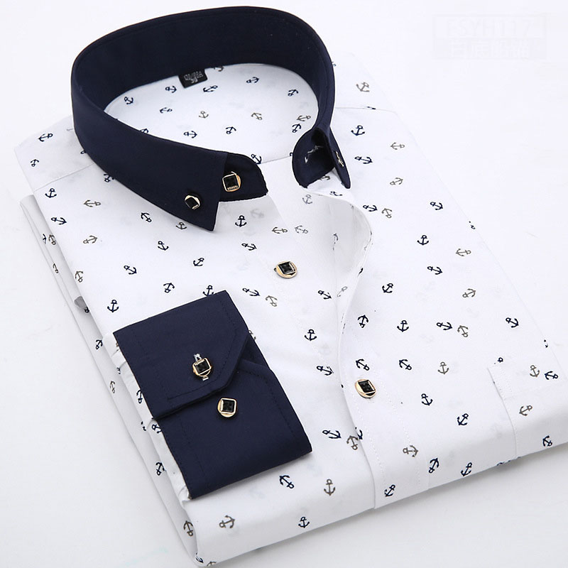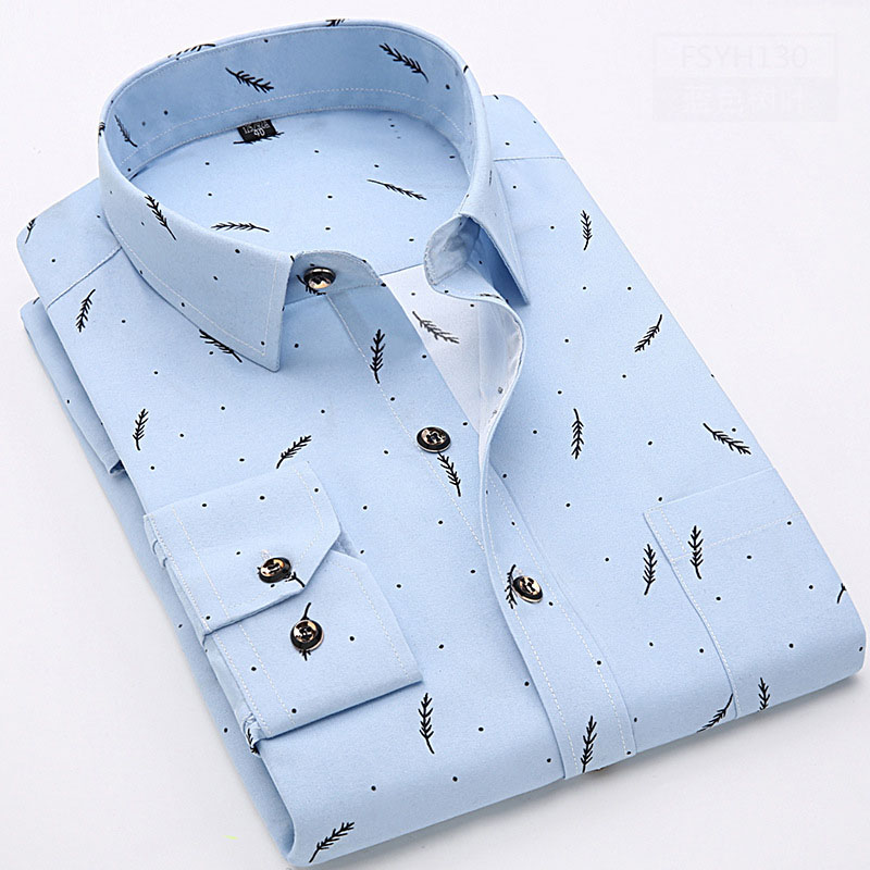 Wholesale fashion casual men's long sleeve shirts Retailer Special Men's Clothing Classic print youth slim shirt