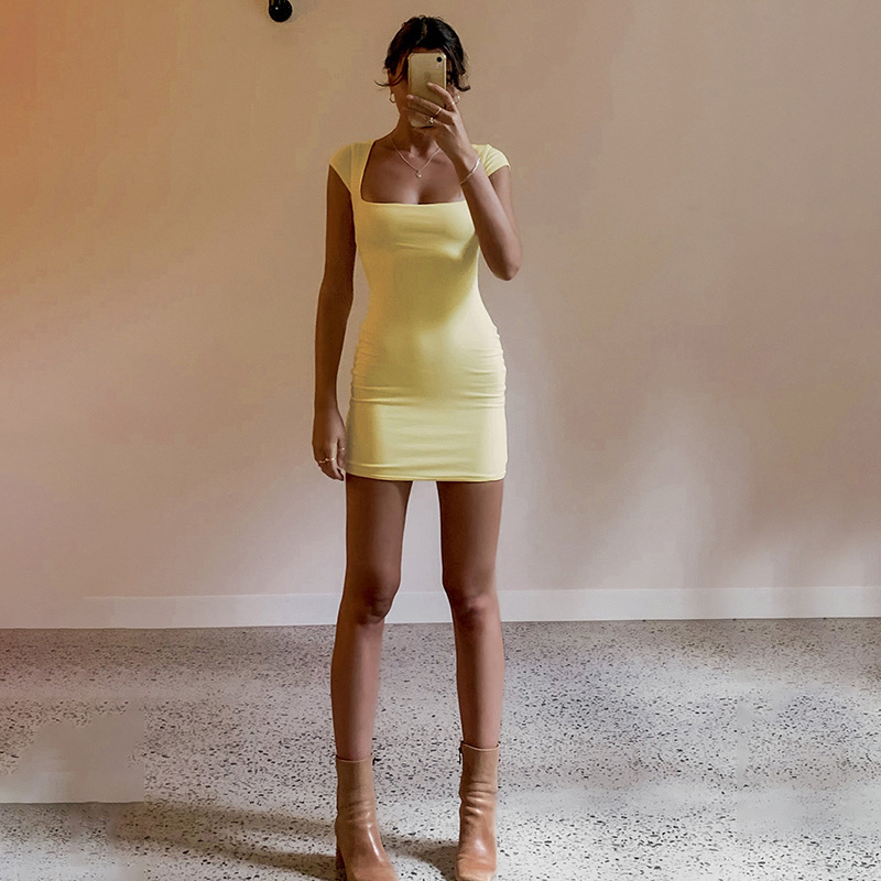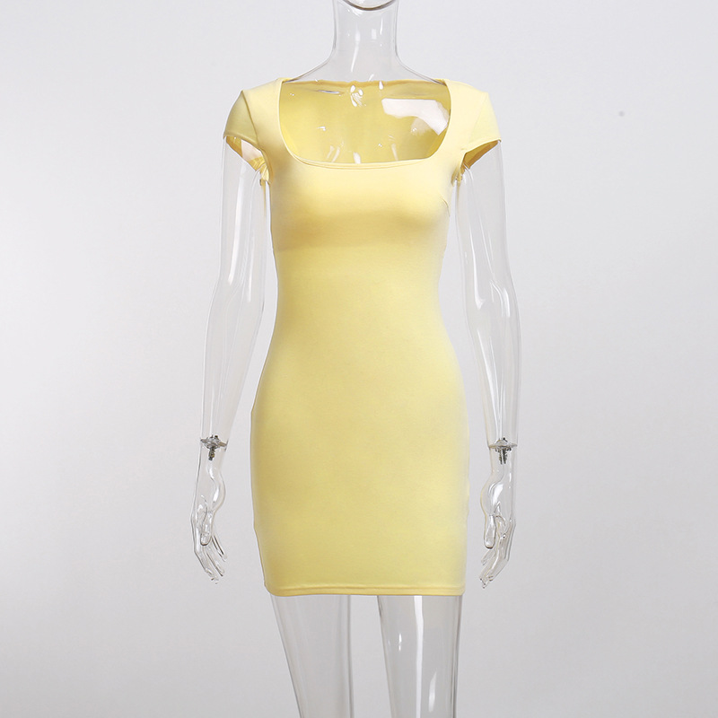 item | Hollow Out Women Mini Dress Short Sleeve Square Neck Summer Sexy Skinny Office Lady Party Street Solid Female Clothing |