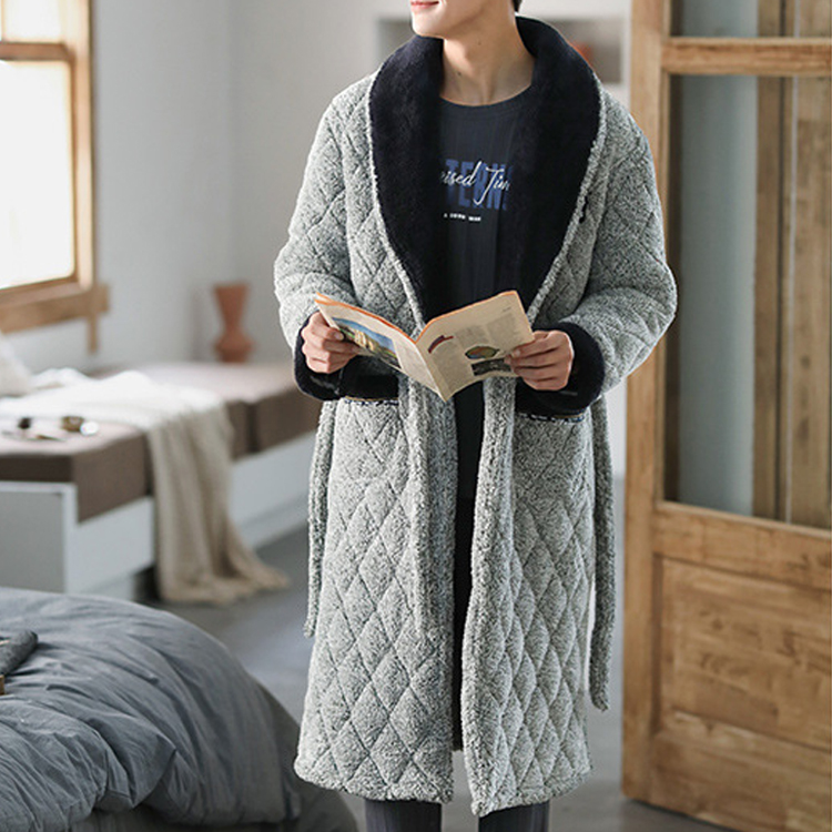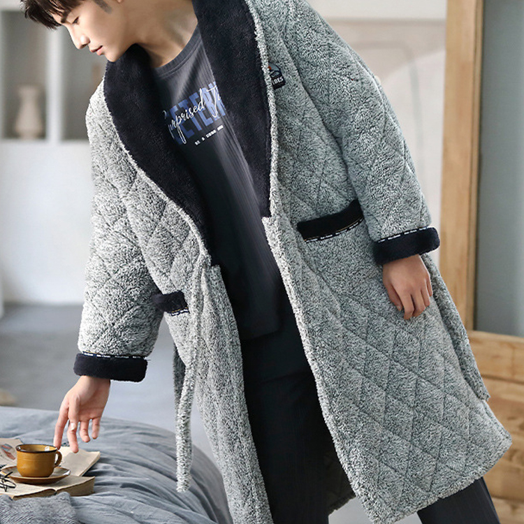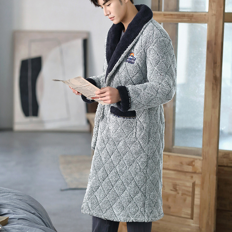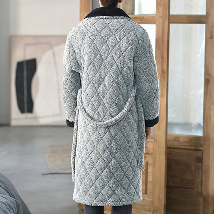 Hot Selling Luxury Home Thick Coral Waistband Knee Length Fleece Polyester Man Bathrobe