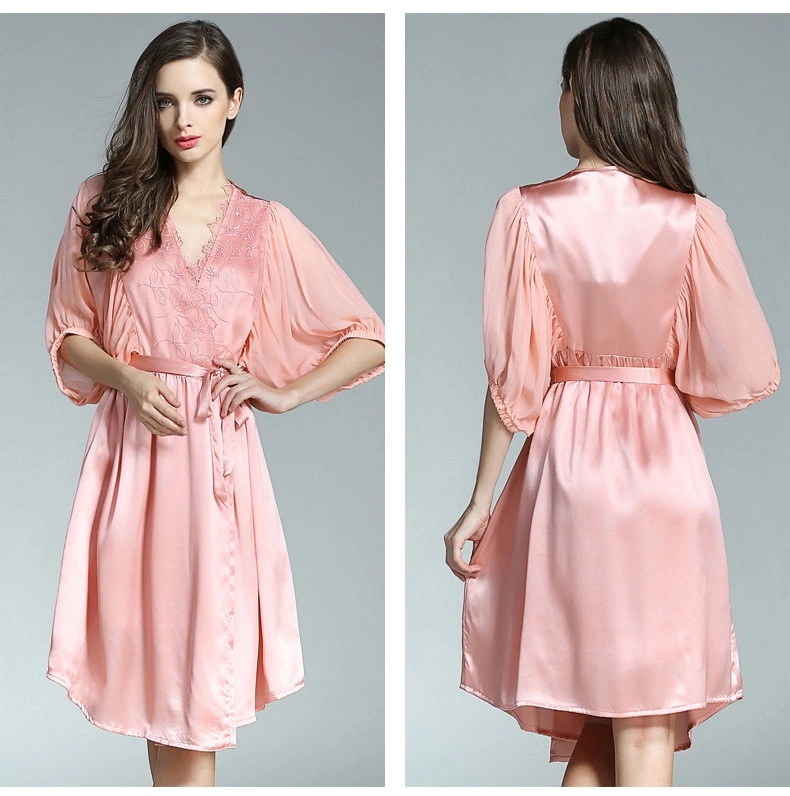 Hot Sale Wholesale Sexy Lace Silk Robes Women Mulberry Silk Dress Satin Bathrobe