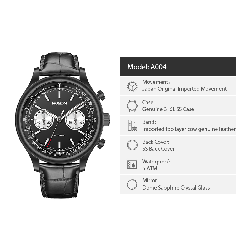 Clasp Type | Butterfly buckle | Movement Brand | JAPAN Automatic mechanical chrono Movement | ||