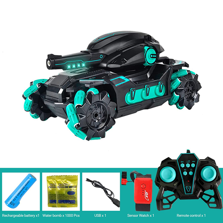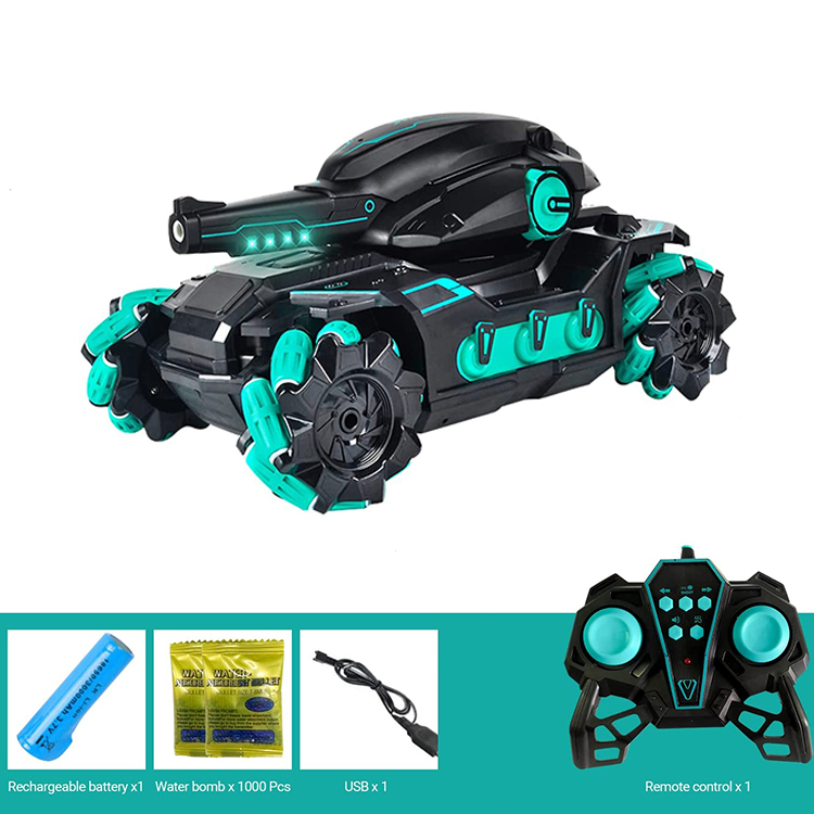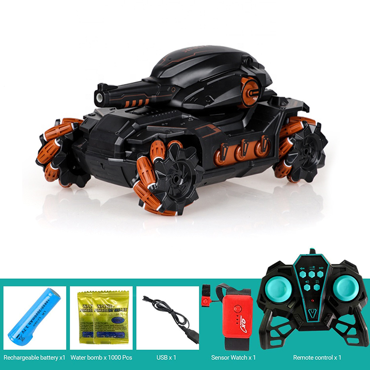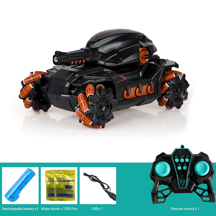 Function | The water bomb tank has two control modes: remote control and gesture control 2.4G remote control, you can quickly drift, cool style, can 360 ° rotate in place, firing water bombs, with sound and light effects, support charging battery life | ||||