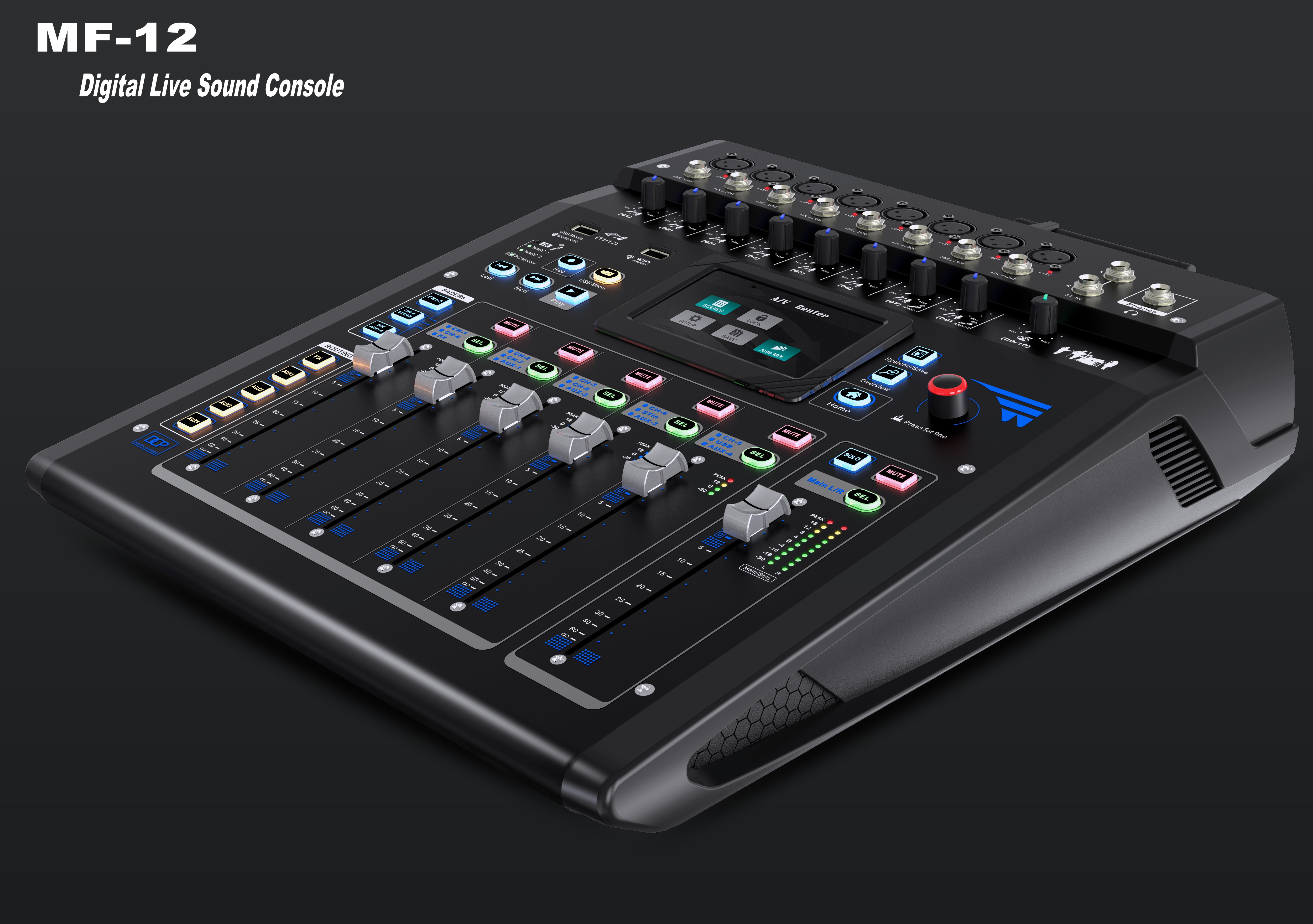 It adopts 100mm stable, durable, high-speed electric fader, which is easy to operate and feel good.