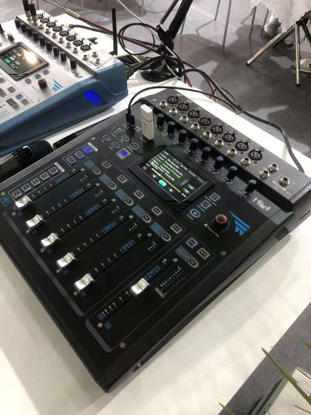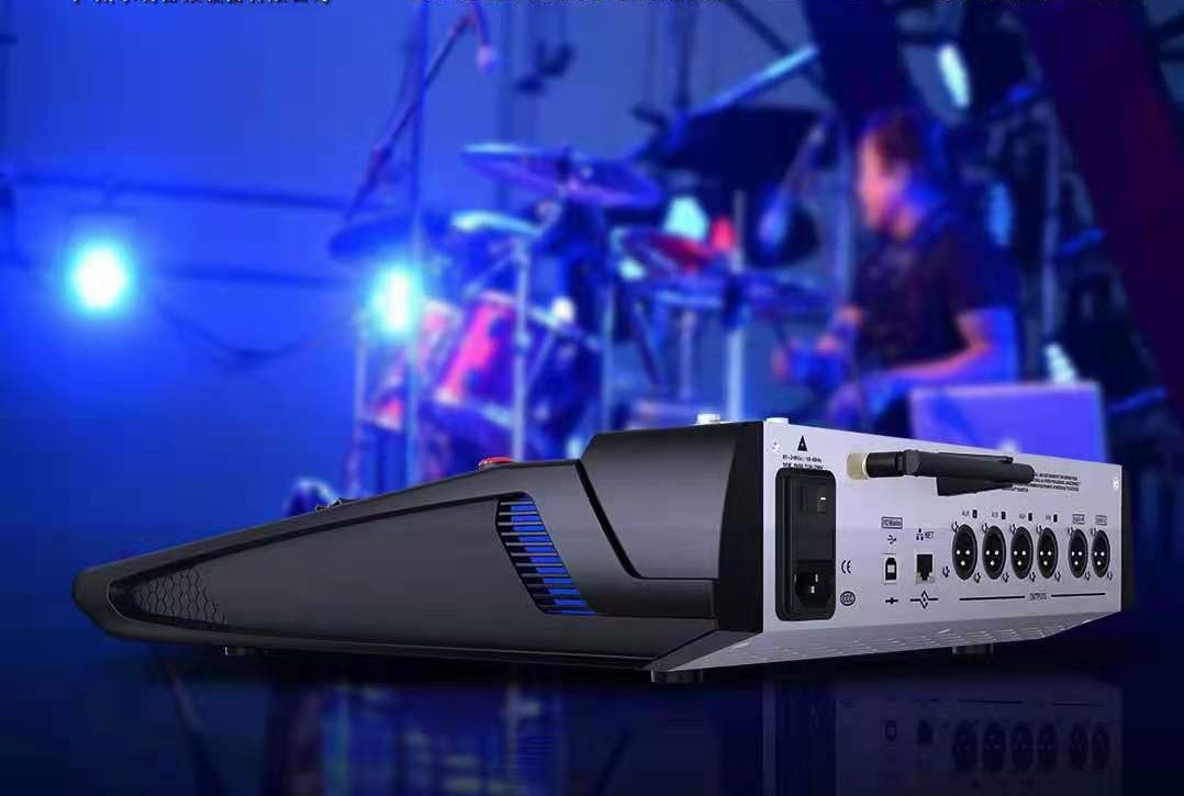The input channel has analog gain, 4-band PEQ, high/low pass filter, noise gate, compressor, polarity reversal, feedback suppressor, independent 48V phantom power supply, etc.
