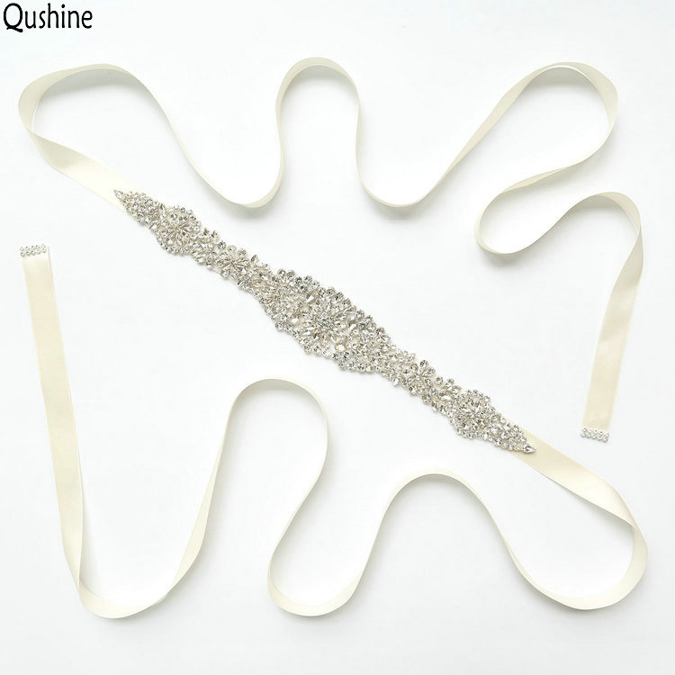 Qushine Wedding Girl Belt Crystal Rhinestones Beaded Wedding Bridal Dresses Sash Belt Dresses Accessories