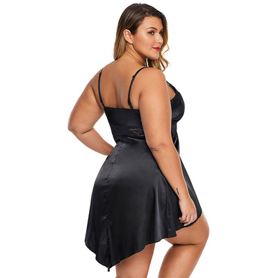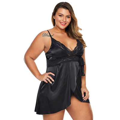 item | Lace satin ladies plus size women's sleepwear sleep Silk pijama plus size lace satin babydoll V Neckline Plus Size Babydoll |