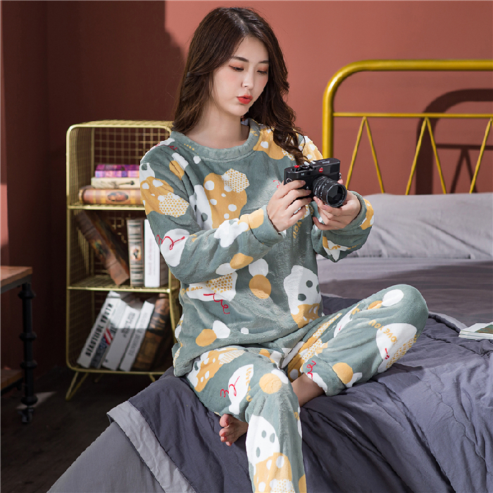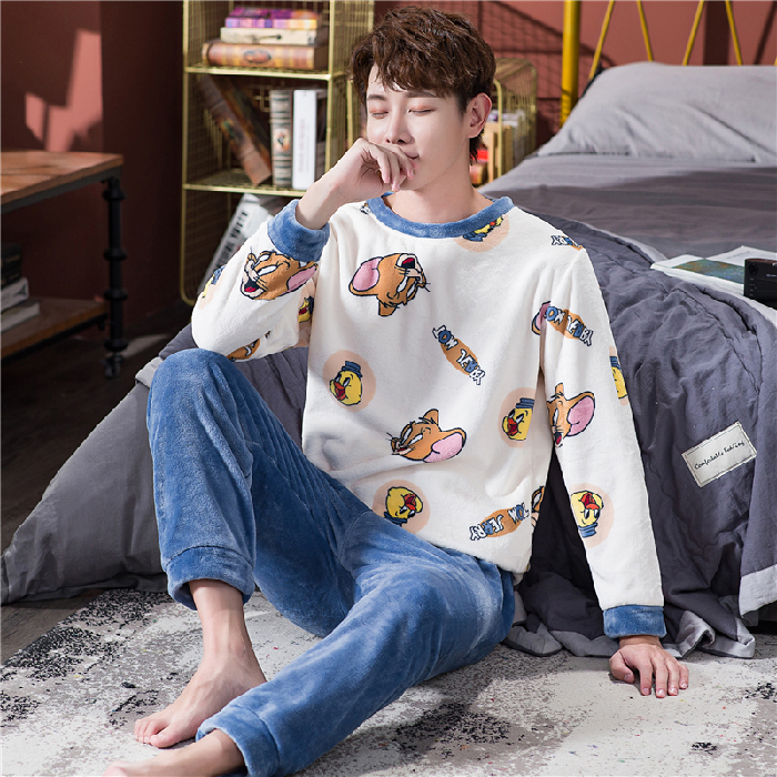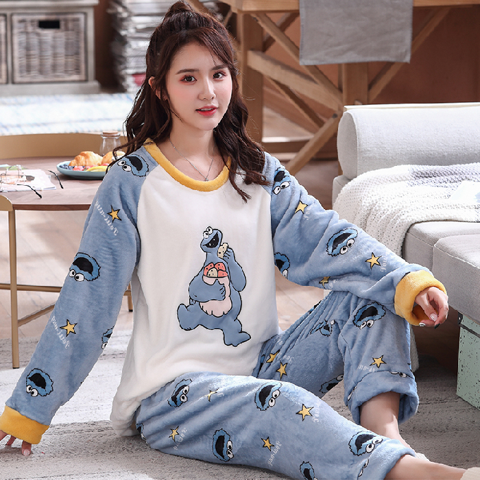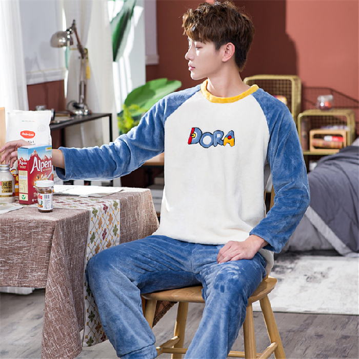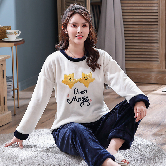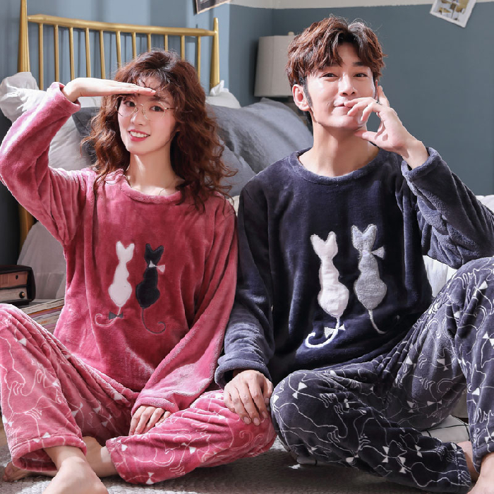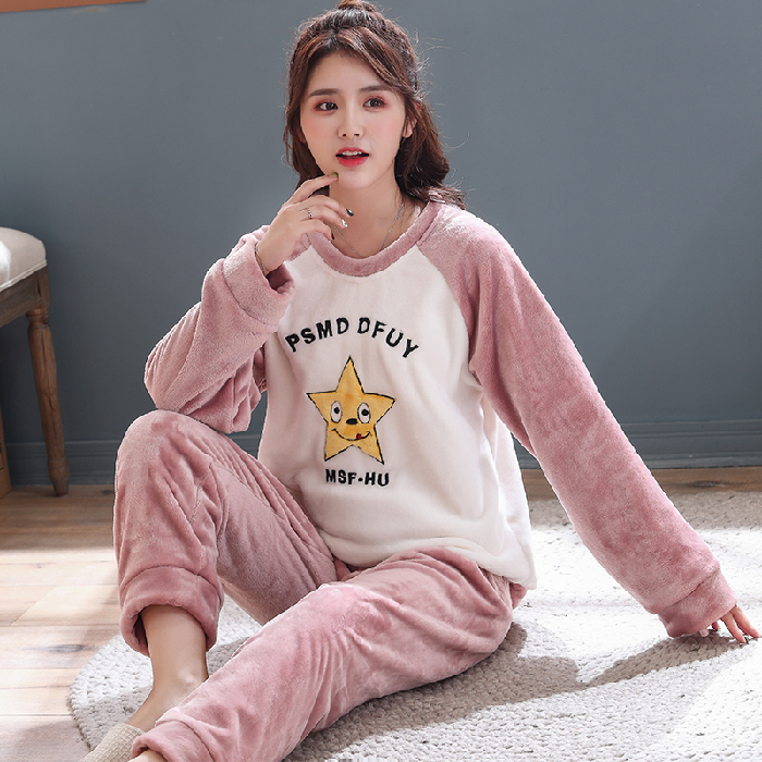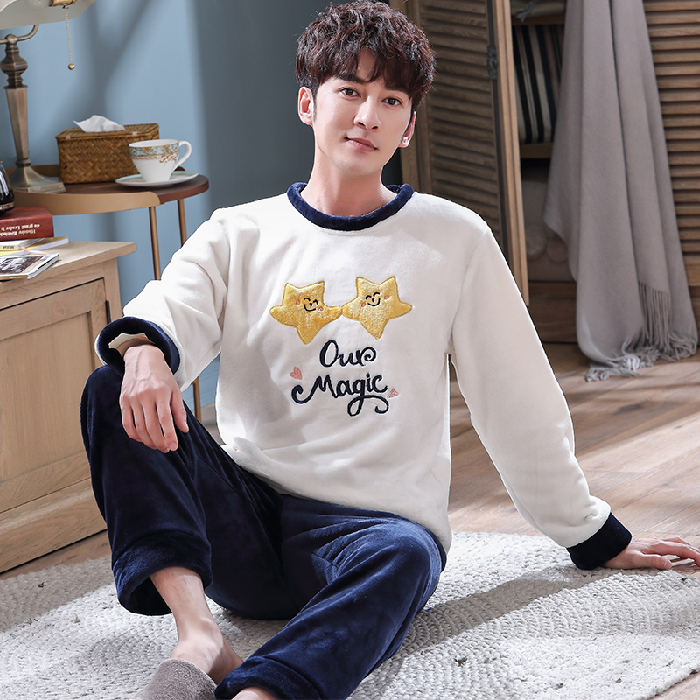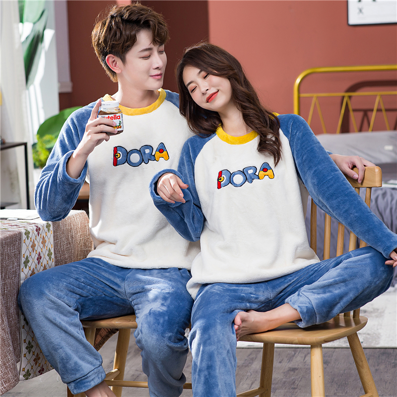 Product Name | New Autumn Winter Spring Couple Men Women Cartoon Smile Star Long Pajamas Set 2 Pcs Soft flannel Cartoon Sleepwear Home clothing |
