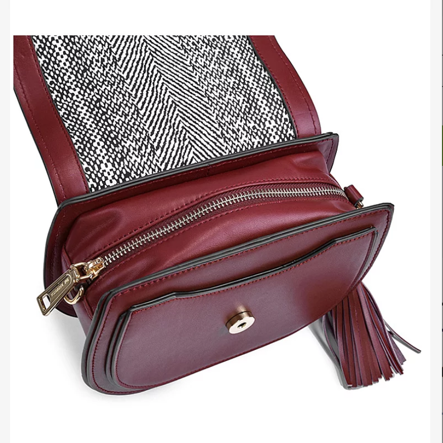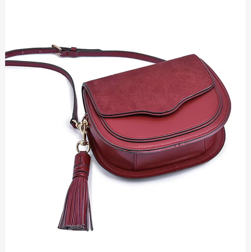 Stylish Ladies Shoulder bags Cross Body Purse Cowhide Genuine Leather Handbag with Tassel |