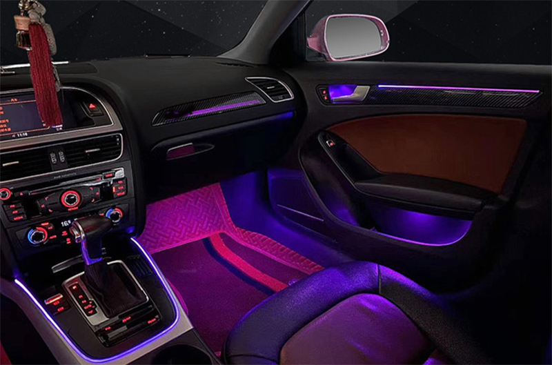 Include:6 pieces Style:carbon look/Mahogany style Lights:4 doors+Center console+Foot socket light+cup holder+handle light Warranty:1 year Shipping:free