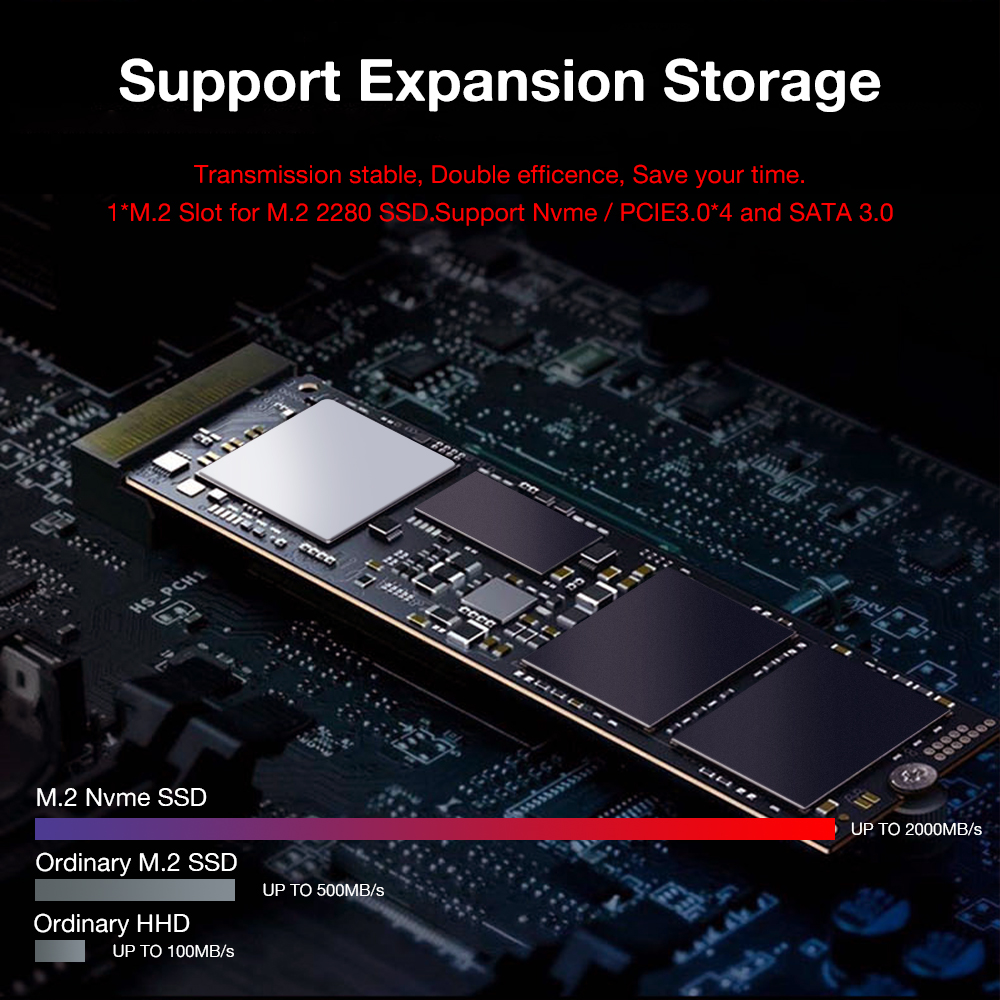 Storage | M.2 | 1 x M.2 slot for M.2 22*80 SSD, support NVME/PCIE3.0x4 and SATA3.0 | ||||||