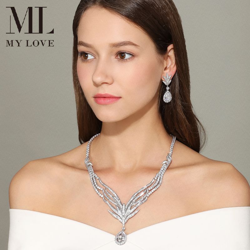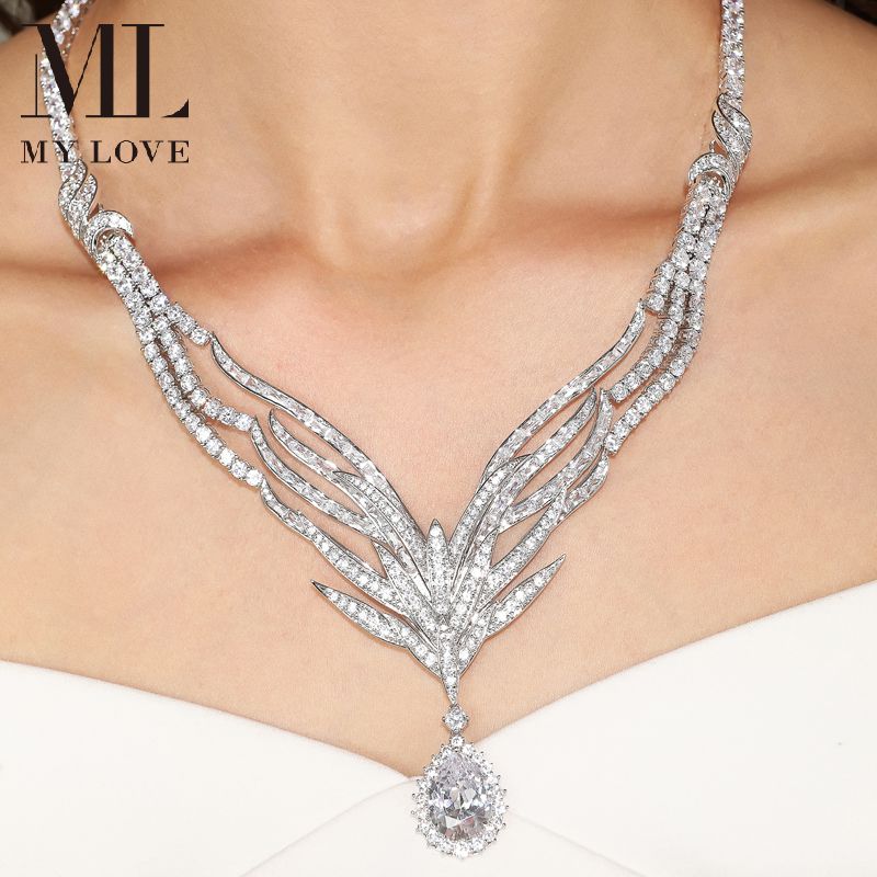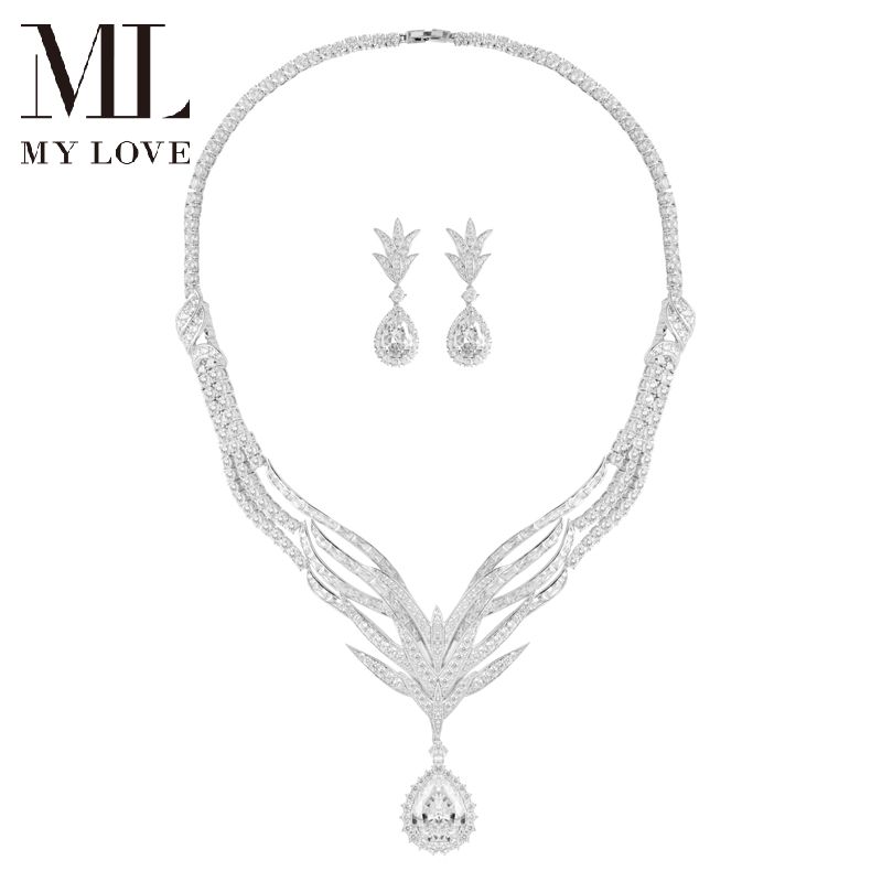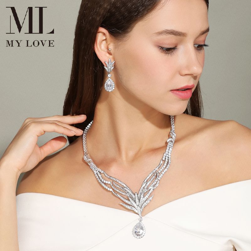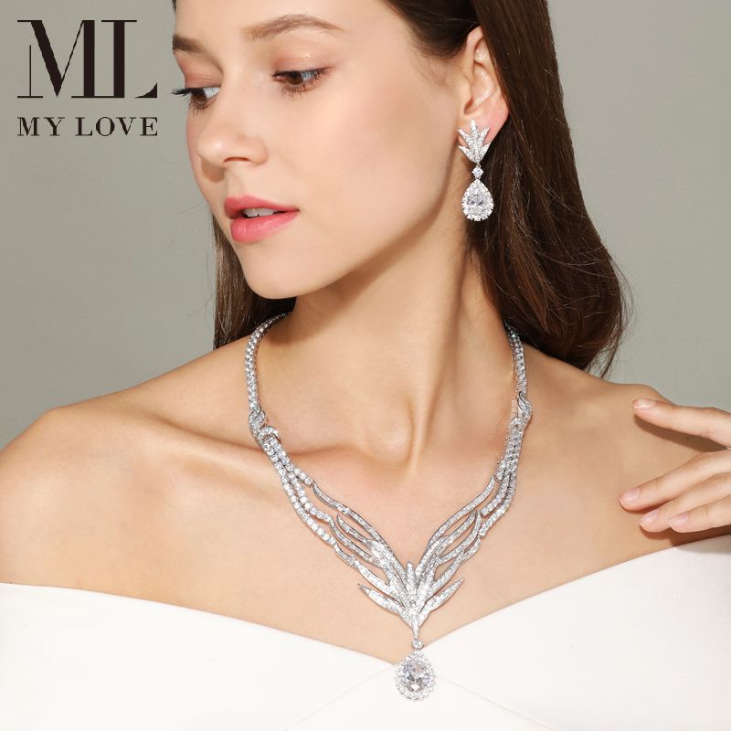Luxury Waterdrop Cubic Zirconia Diamond Bridal Jewelry Set Statement Wedding Necklace Earring Sets