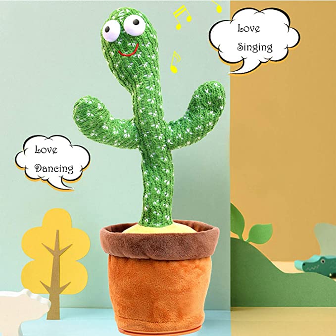 - The cactus toy is made with soft materials, when turn on the button, it can be twisted to sing and dance, bringing laughter to the family and friend.