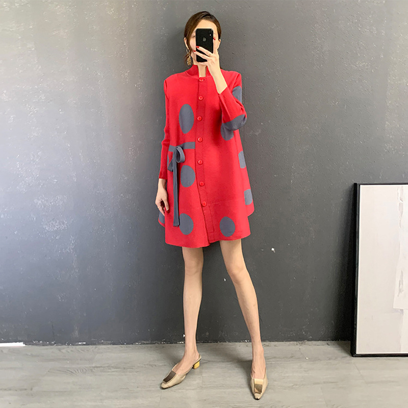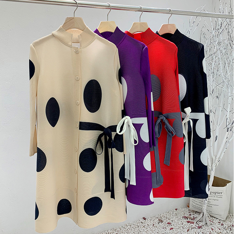 FXZ Fall 2021 new design miyake pleated wave dot coat belted breasted cropped sleeves pleats women cardigan