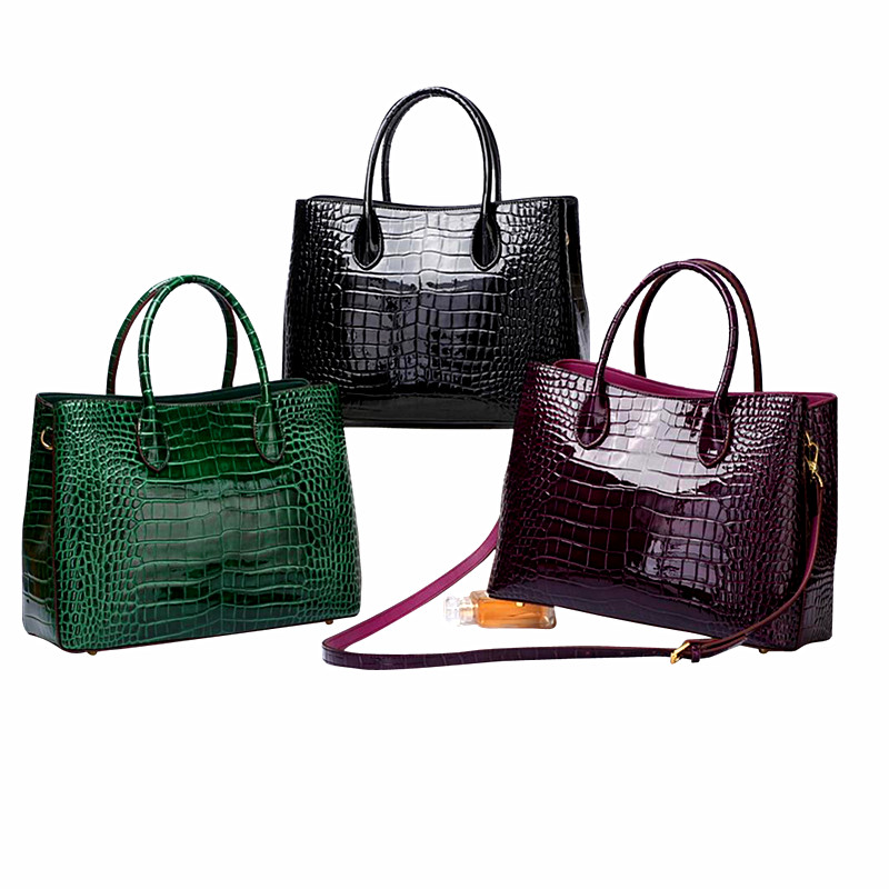 2021 High Quality Luxury Designer Women Crocodile Print Genuine Leather Lady Tote Hand Bags Shoulder Bag Large Lady Handbags