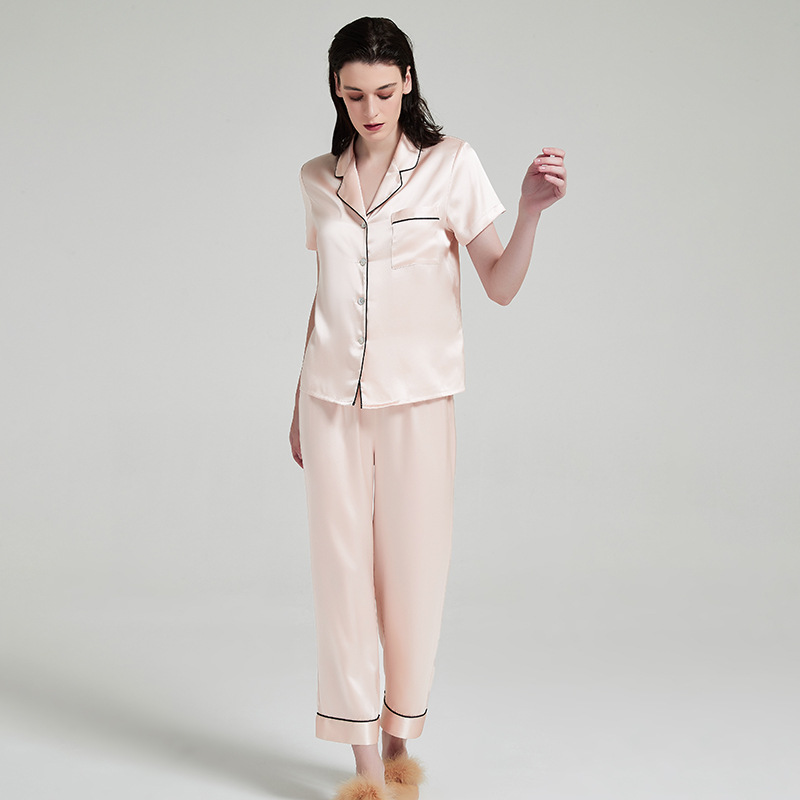 Wholesale Pajamas Sleepwear Pink Real 100% Silk Pajamas Set Women's Silk Pajamas Sets Custom For Women Silk