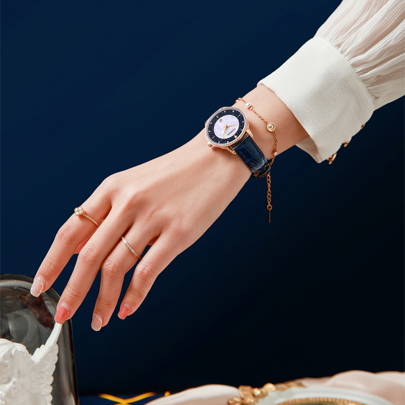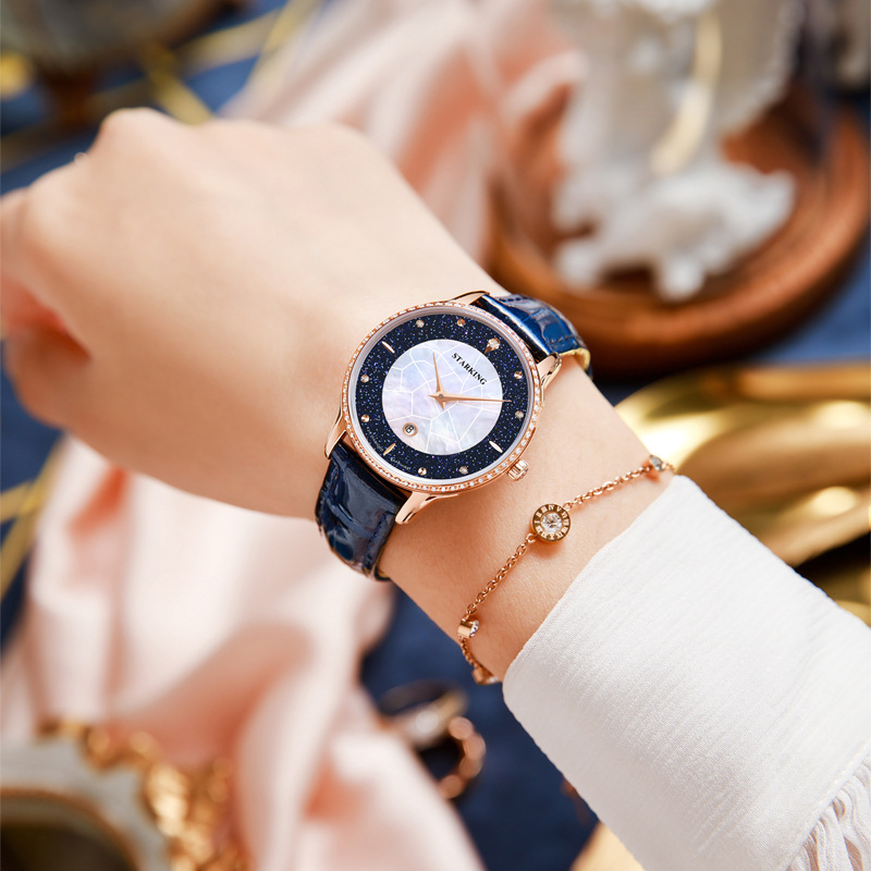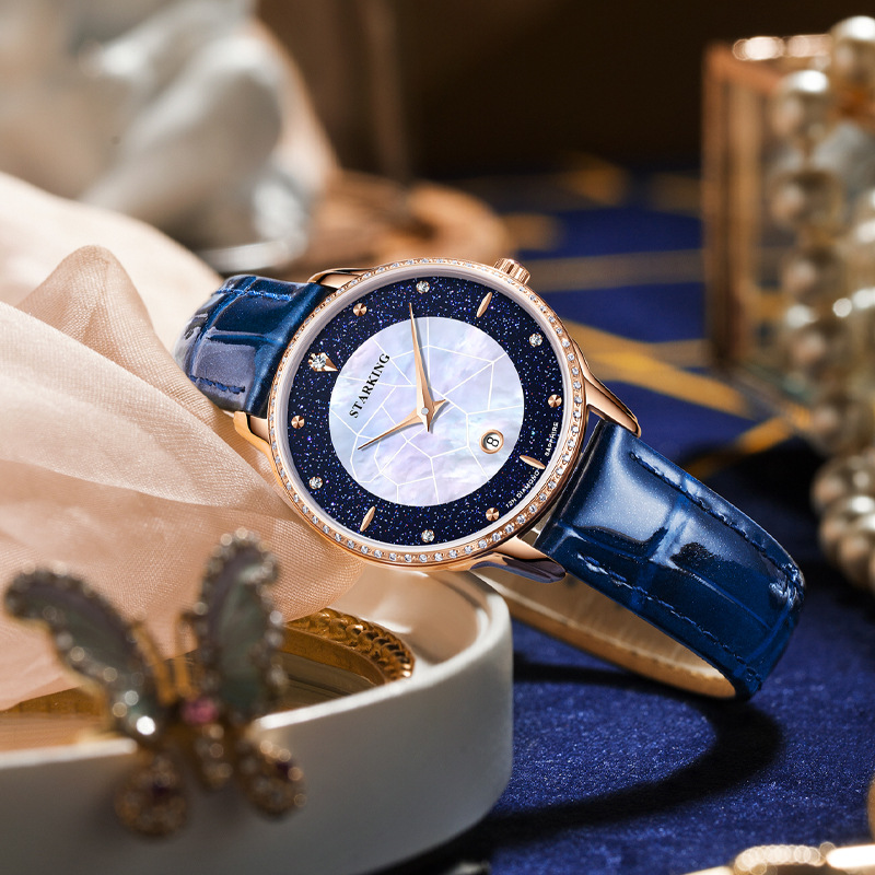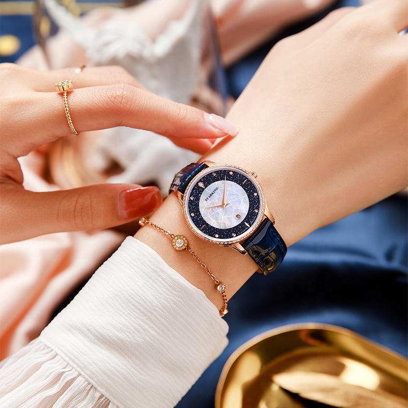 2021 New Women's Luxury Diamond Watch, Blue Sandstone & Fritillaria Dial Quartz Watch.