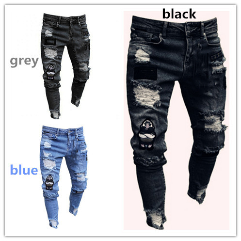 Name | New Italy Style Men's Distressed Destroyed Badge Pants Art Patches Biker White Jeans Slim Trousers men denim jeans | ||||||
