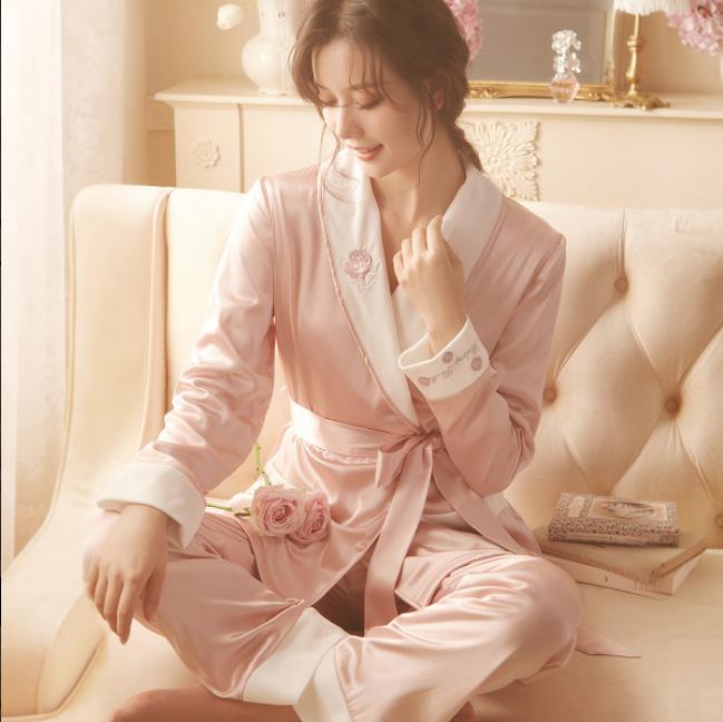 Thin Velvet Pajamas Set Women's Autumn and Winter Sleepwear Set Sweet French Style Fashion Solid Color Fleece Homewear Suit |