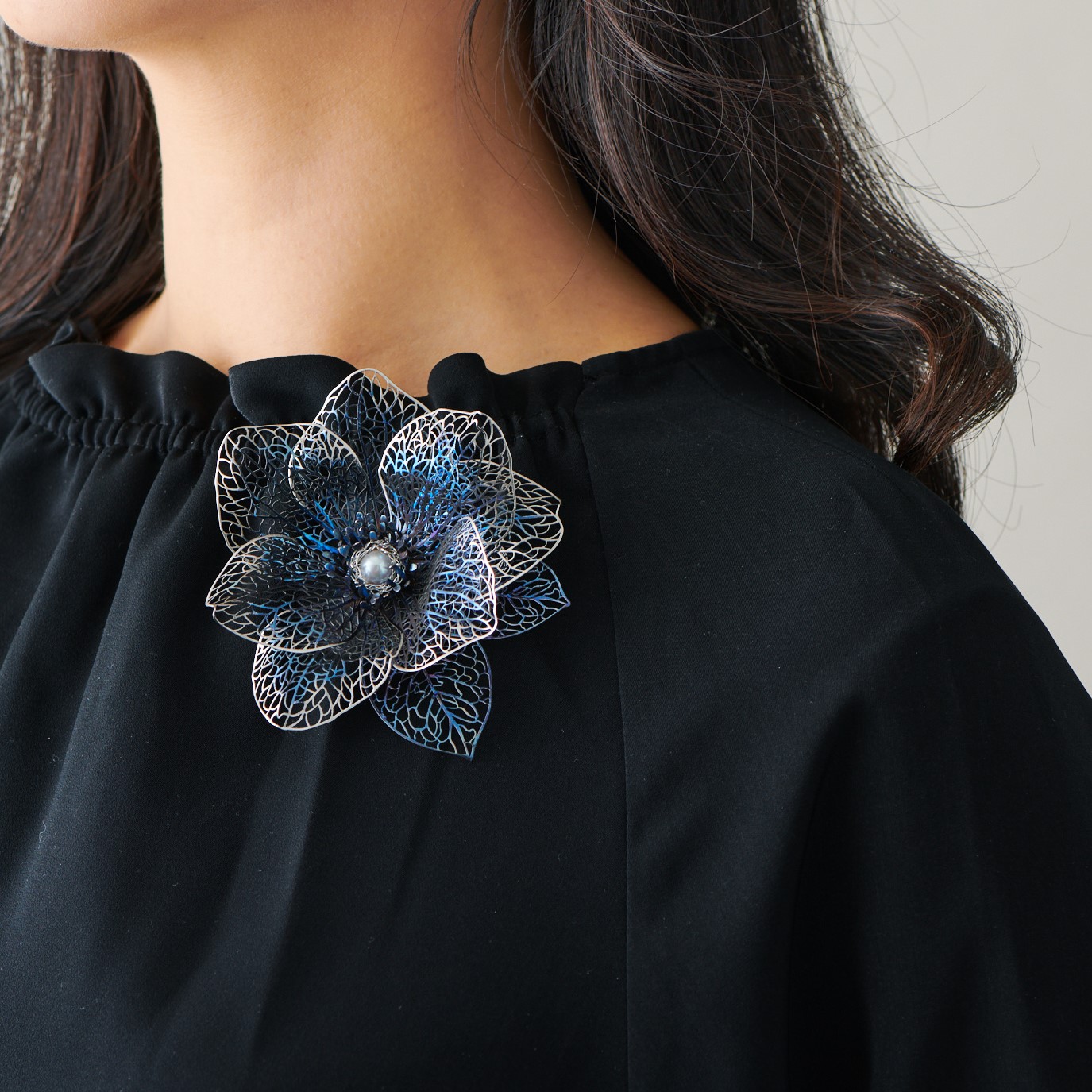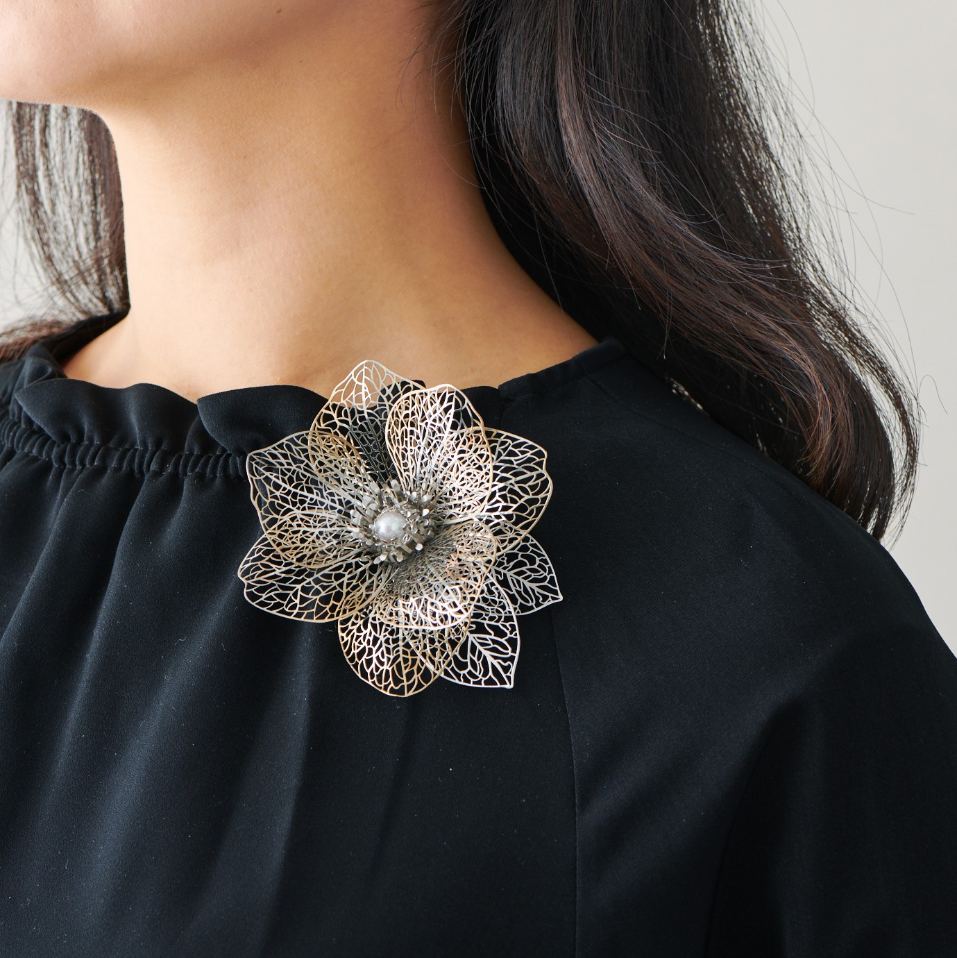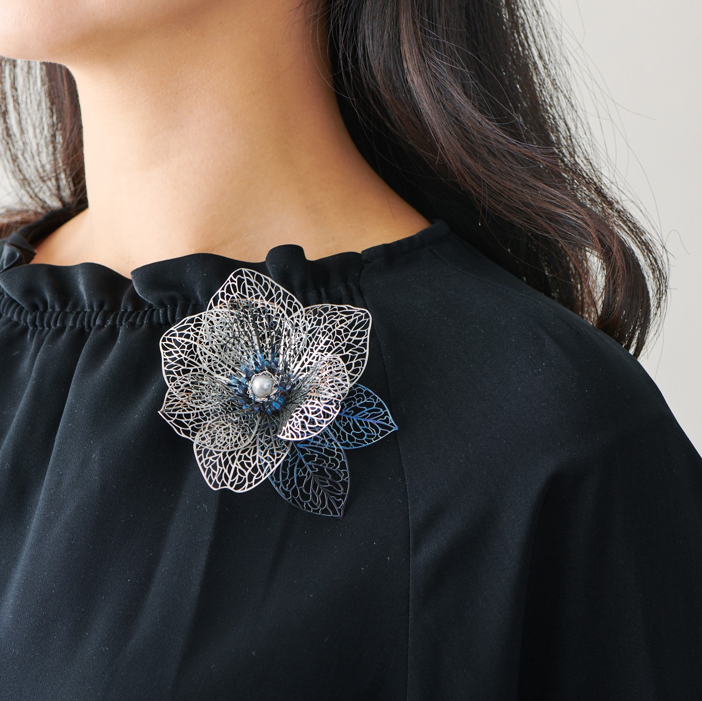 【About the simply usability】 ●Easy to wear with magnets Powerful magnets(Neodymium magnet)are attached,so it is easy to wear even on winter knit fabric. ●Light weight since the product is quite big in three-dimensional size , you might think it is heavy . But in fact , the average weight is 70 grams , making it also usable even on georgette blouses. ●Prodauct care Made out high-quality stainless steel , dropping the product wouldn’t harm. You can easily wipe off the dust with a cheek-brush. ●Continuous beauty Since the stainless steel of, aging, such as copper or brass does not occur.Can be used in long and beautiful condition with color and shape.