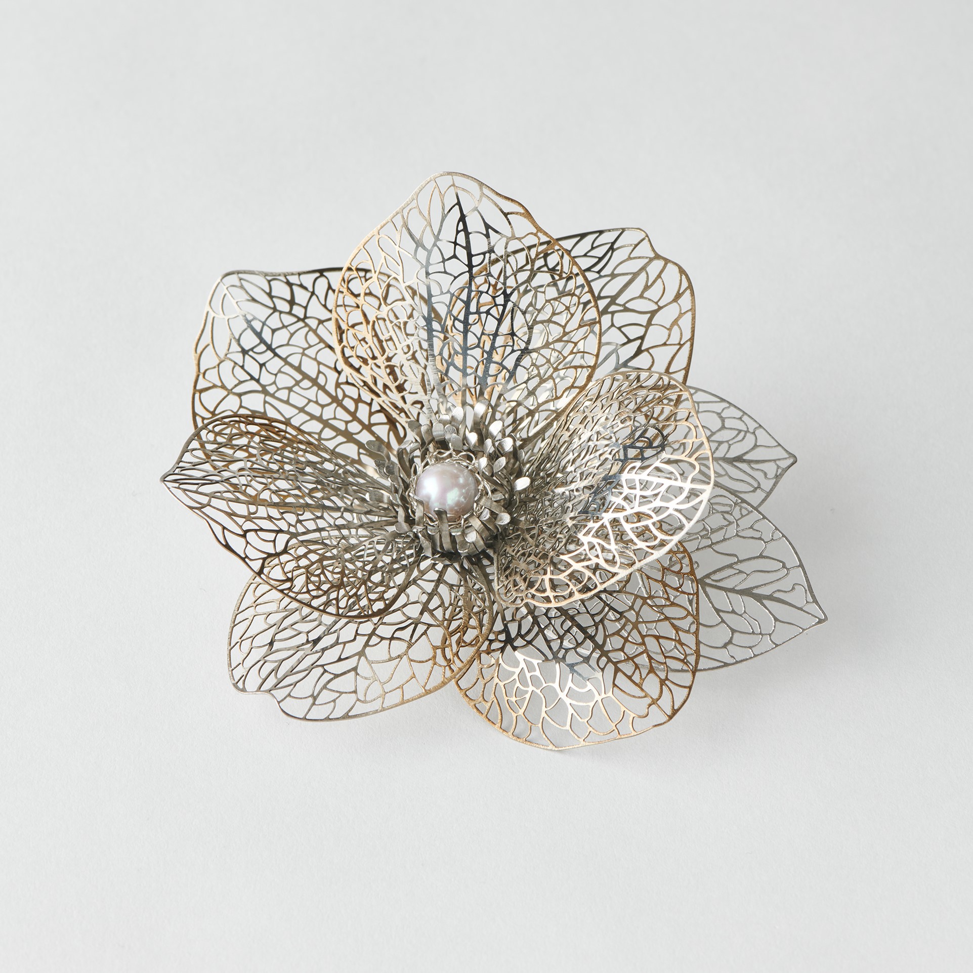 High quality and reliable made in Japan. In order to match characteristic "forever”,we use long-lasting materrials and high-quality stainless steel. By carefully smoothing and sharpening the surface, the brilliance and beauty are perfectly expressed. Grace that you can fully feel the technical strength and design of THE BLOSSO, which delicately created all the petals. An elegant finish with freshwater pearls in the center. Recommended for those who want to enjoy fashion that is different from people.