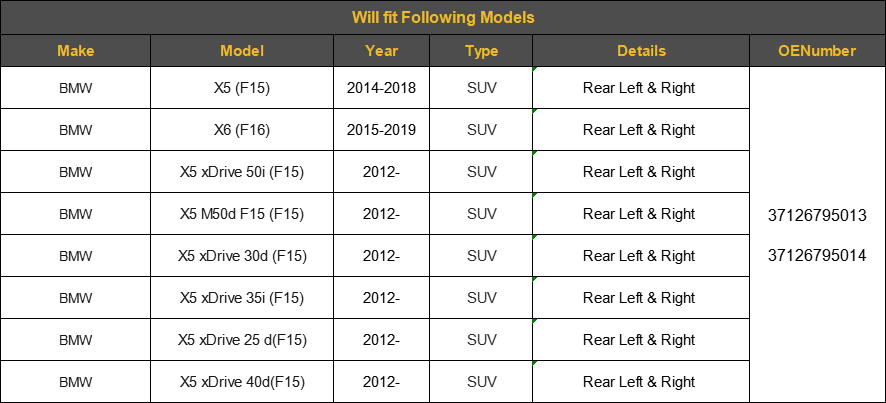 Car Model | for BMW X5 X6 E70 E71 E72 F16 F85 2007-2014 | ||||||