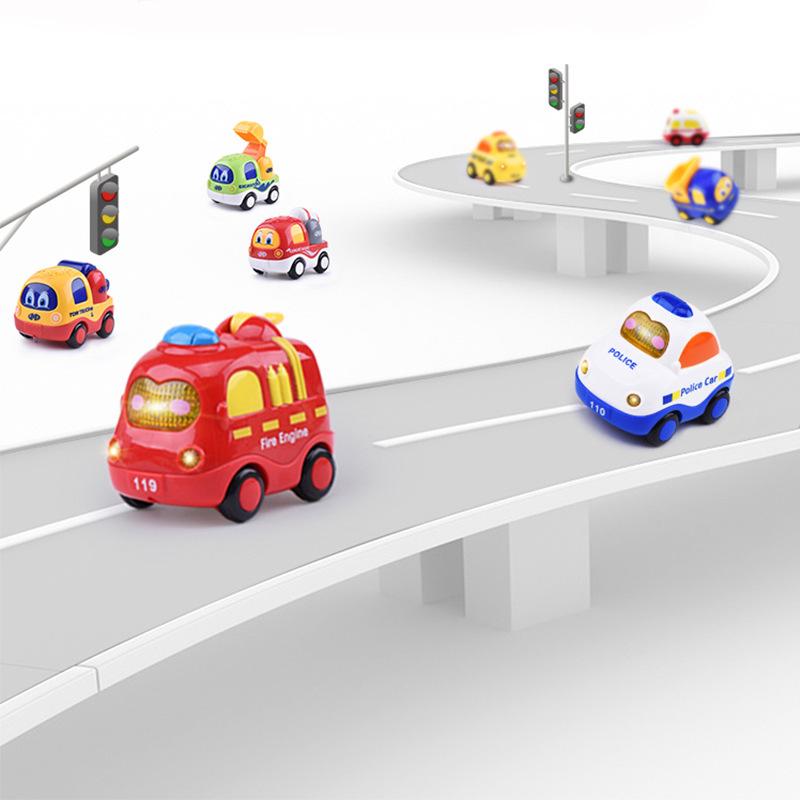 Wholesales Mini Cartoon Pull Back Car Set For Baby Educational Toys Boys And Girls Car With Light And Music