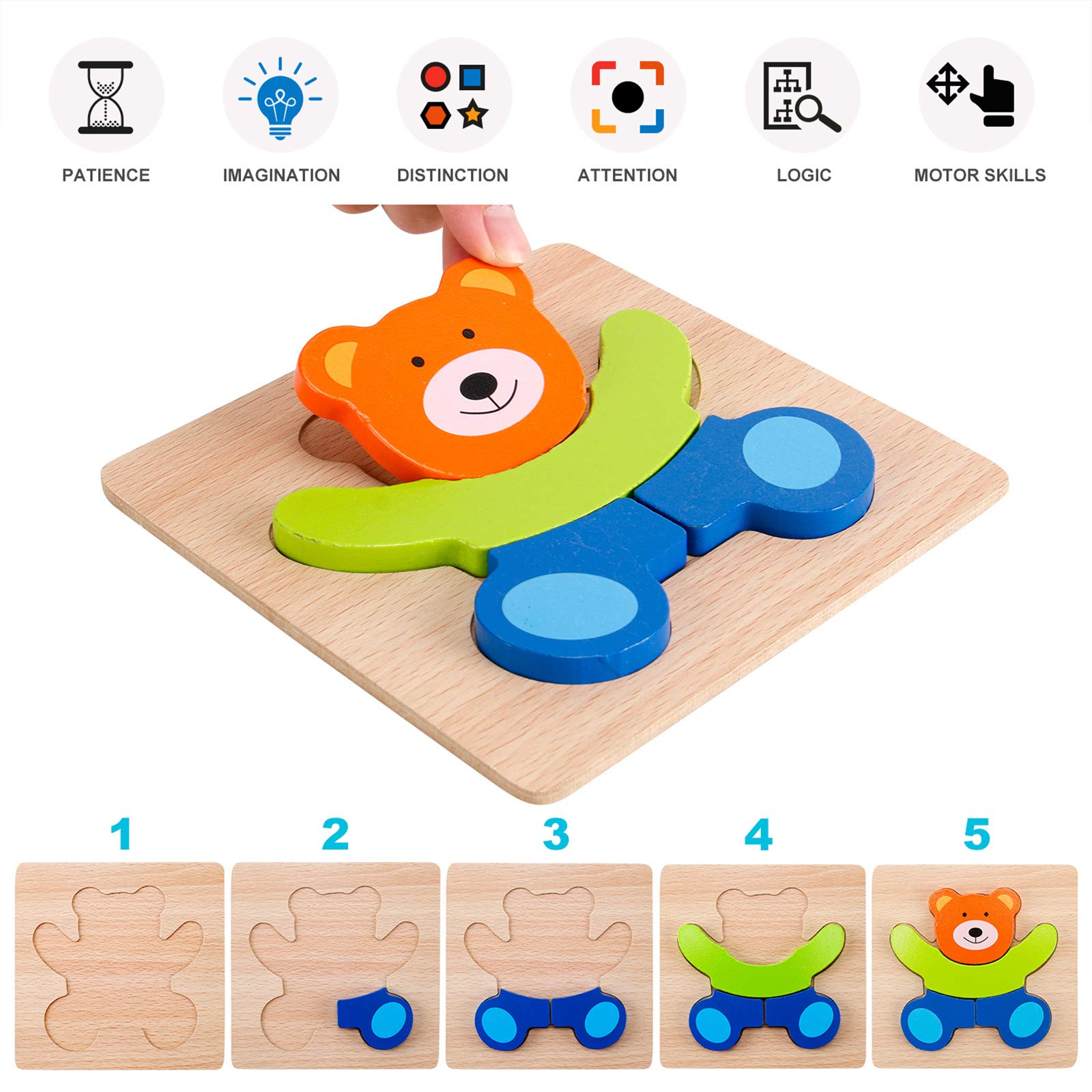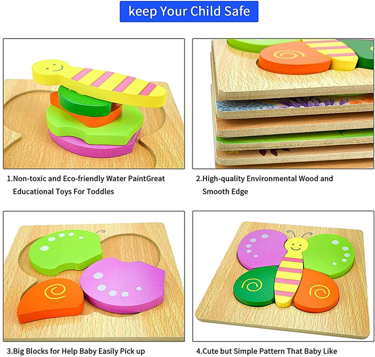 Made of wood with smooth edge,sturdy and durable.Puzzle pieces are big enough for your kids,which will fit nicely into little hands. Toddlers can learn shapes.