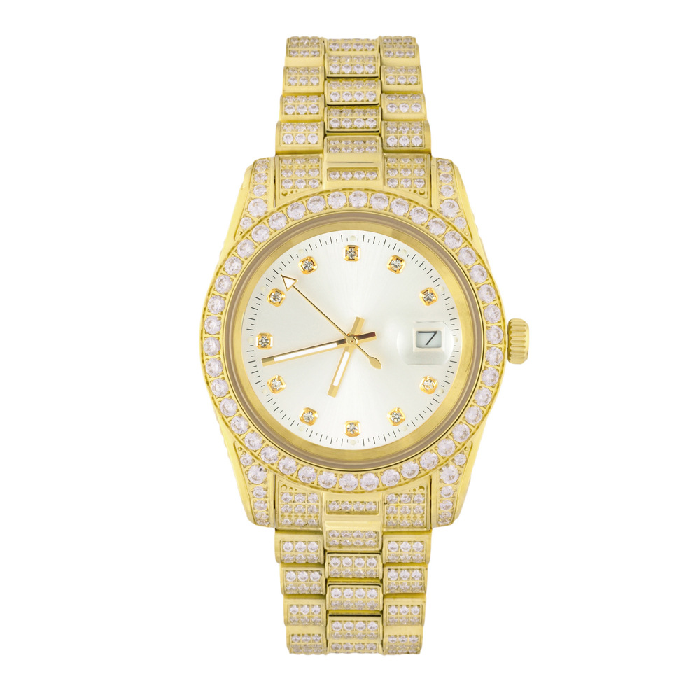 Product Name | New Arrival Hip Hop Style Stainless Steel Quartz Watch Gold Plated Stainless Steel Band Full of Zircon Quartz Men Watch | |||||||