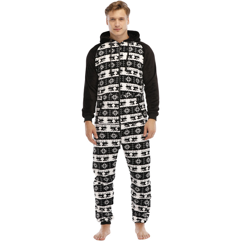 Men Warm Teddy Fleece Onesie Sleep Adult Sleepwear One Piece Pyjamas Male Jumpsuits Hooded Onesies