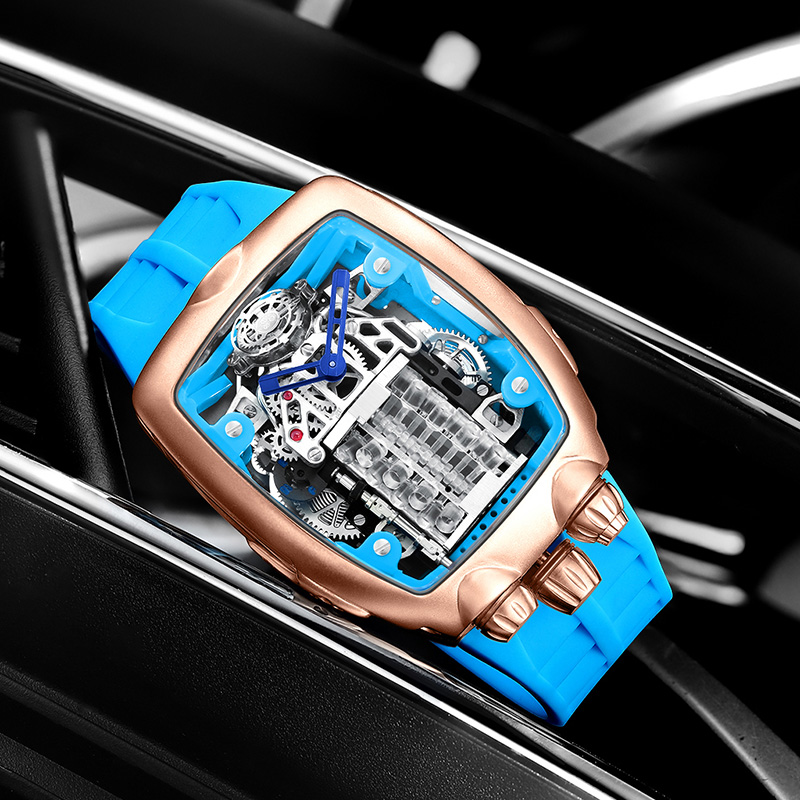Vibration frequency 21600 times /1h, precision movement mechanism will be complex mechanical parts, rubber watchband safety and environmental protection, in daily wear with excellent tear resistance, resilience, heat resistance and other functions。Sapphire crystal glass mirror, 360 degree inspection movement