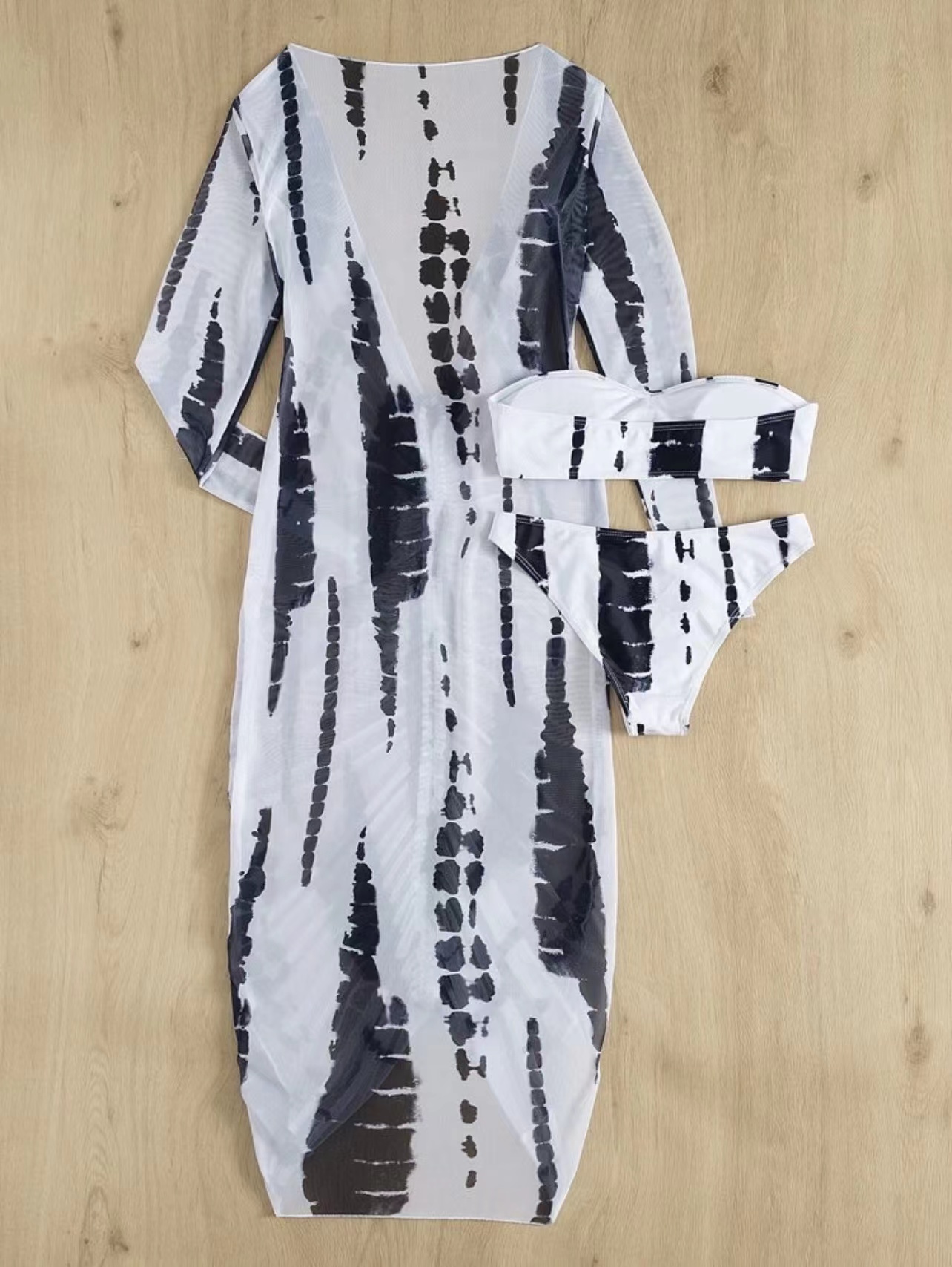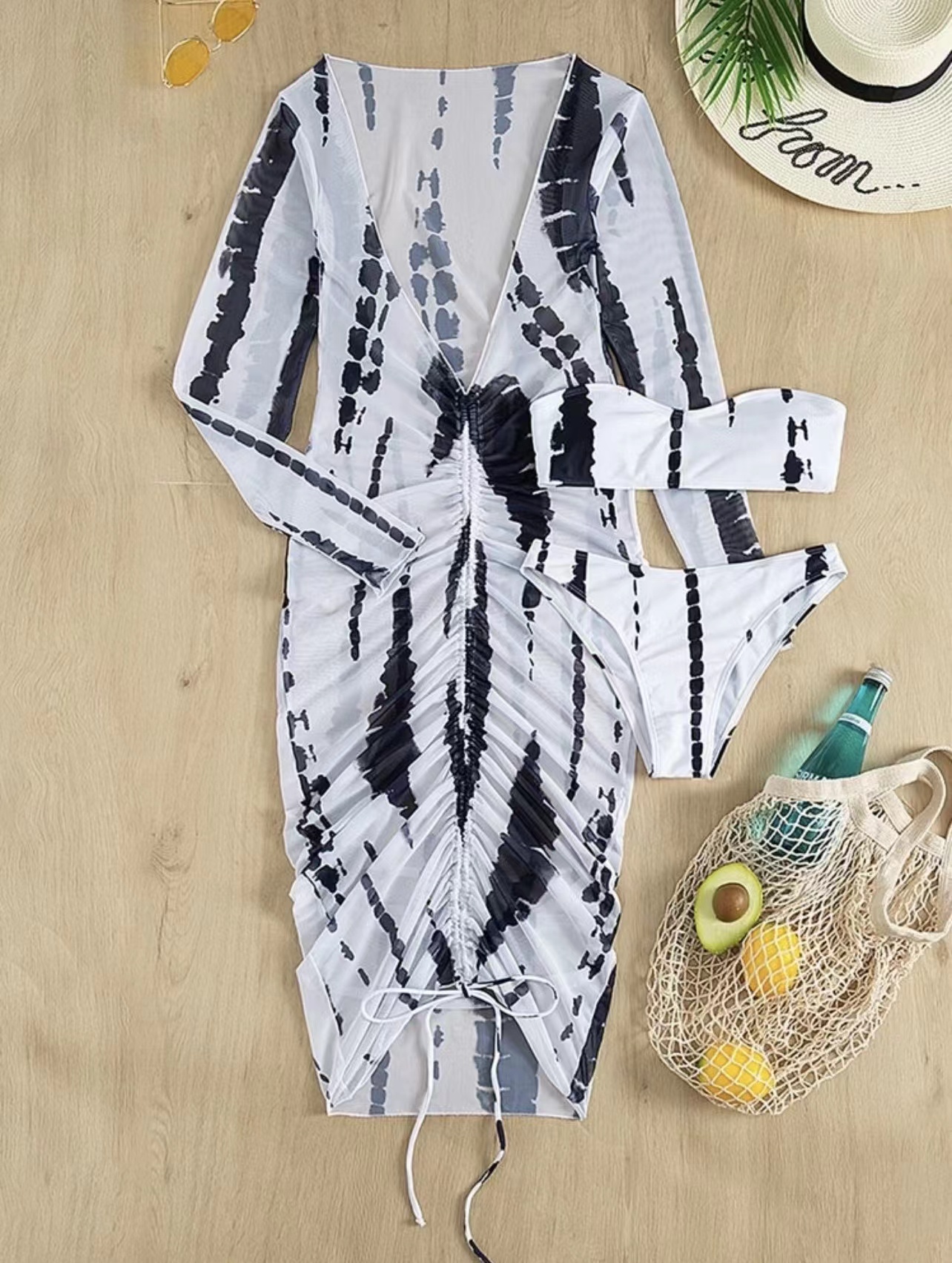 item | 3 pieces long sleeve cover up beach swimsuit for women sleeve coverups bikini cover up net |