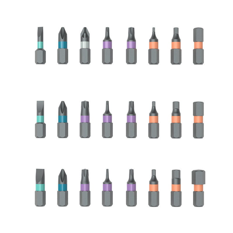 24Pcs Industrial grade S2 chrome molybdenum alloy steel screwdriver heads, with continuous heat treatment process. Assisted high precision CNC integrated molding, carburizing thermal refining, industrial grade service life, hard but not brittle, full of toughness.