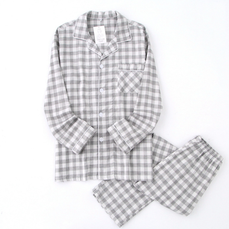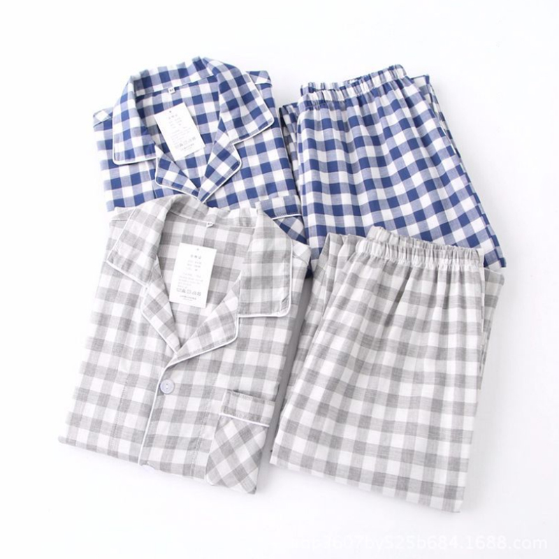 New Water-washed Cotton Long Sleeved Trousers Mens Pajamas Spring And Autumn Lapel Pure Cotton Pijama Mans Nightwear Sleepwear
