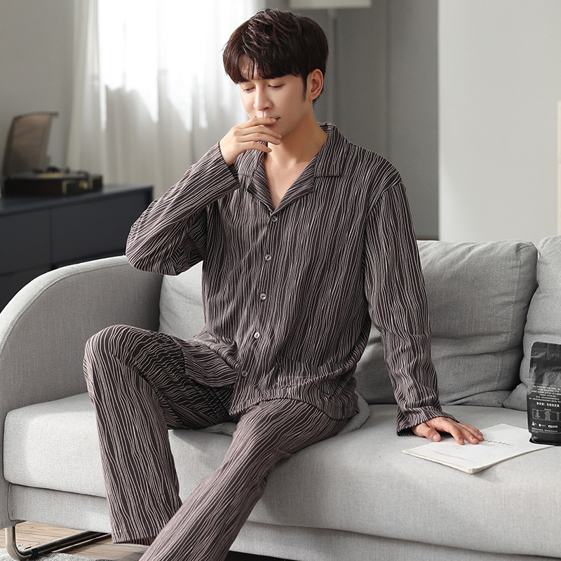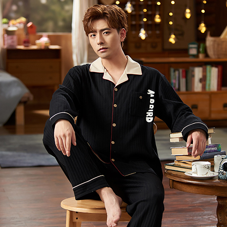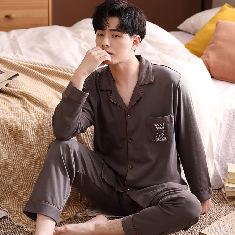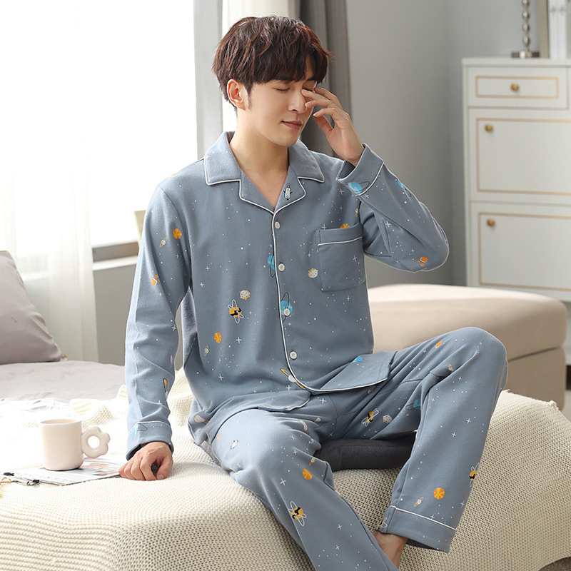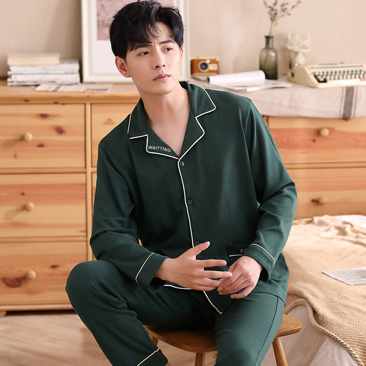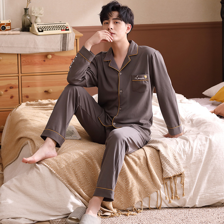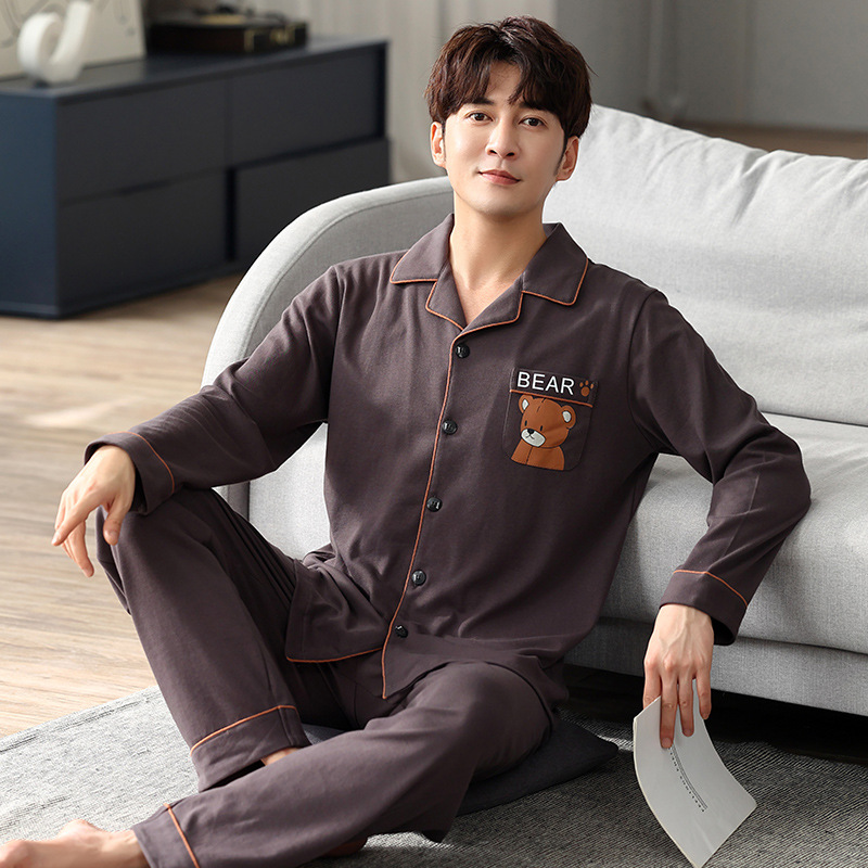 2201 Wholesale Mens Pyjamas 100% Cotton Pajamas For Men Long Sleeve Two Piece Pajama Set Top & Pants Men's Sleep Wear