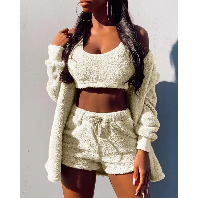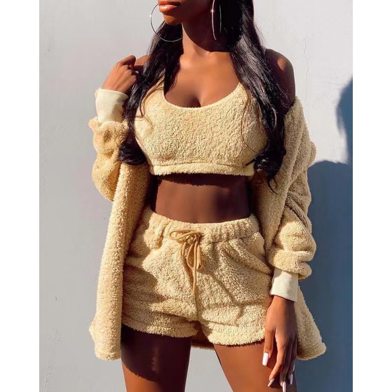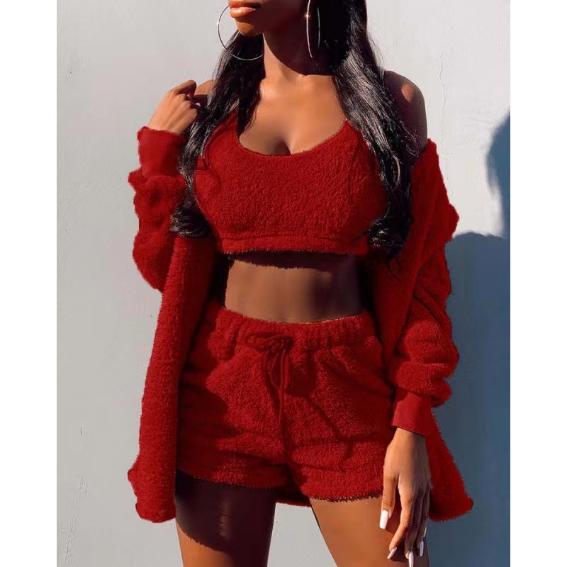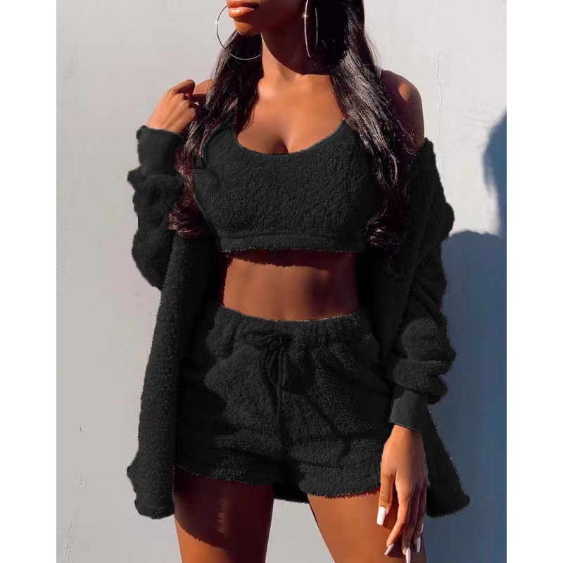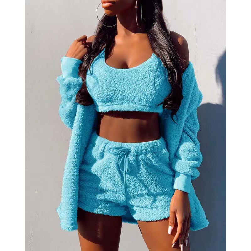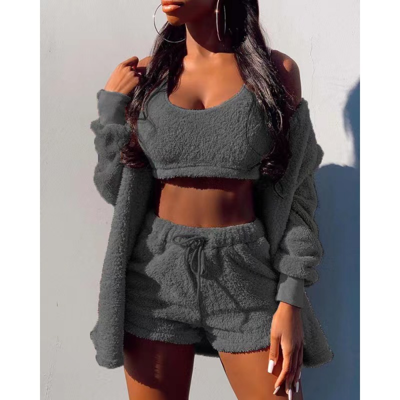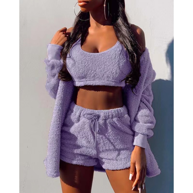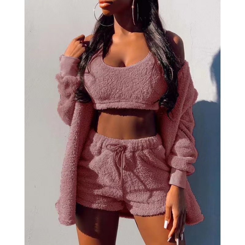 Product Name | fuzzy flannel sleepwear with robe cozy lounge wear set women pajamas |