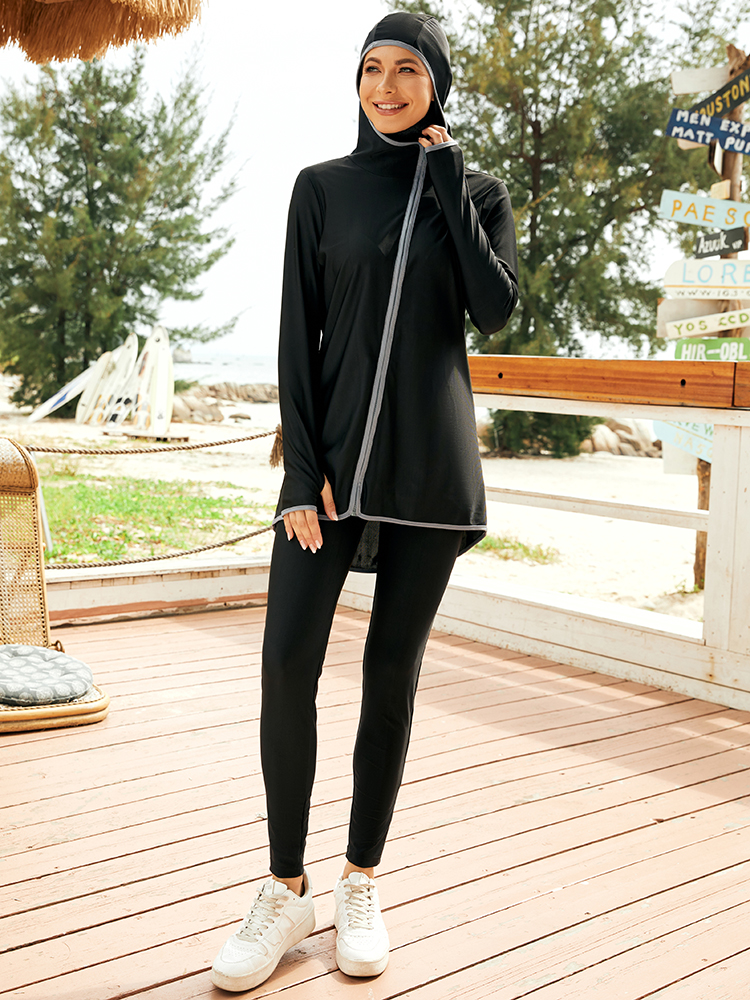 Features | * Soft-touch,Breathable,Lightweight,Fast Dry,Sweat-Wicking Fabric * Crew Neck * Slim Fit * Fake Front-Pocket * 3 Pieces Set,Hijab&Top&Pant * Machine wash |