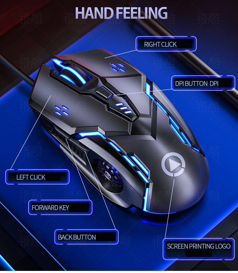 Mute Wired G5 Mouse Six Keys Luminous Game E-sports Machinery Computer Accessories
