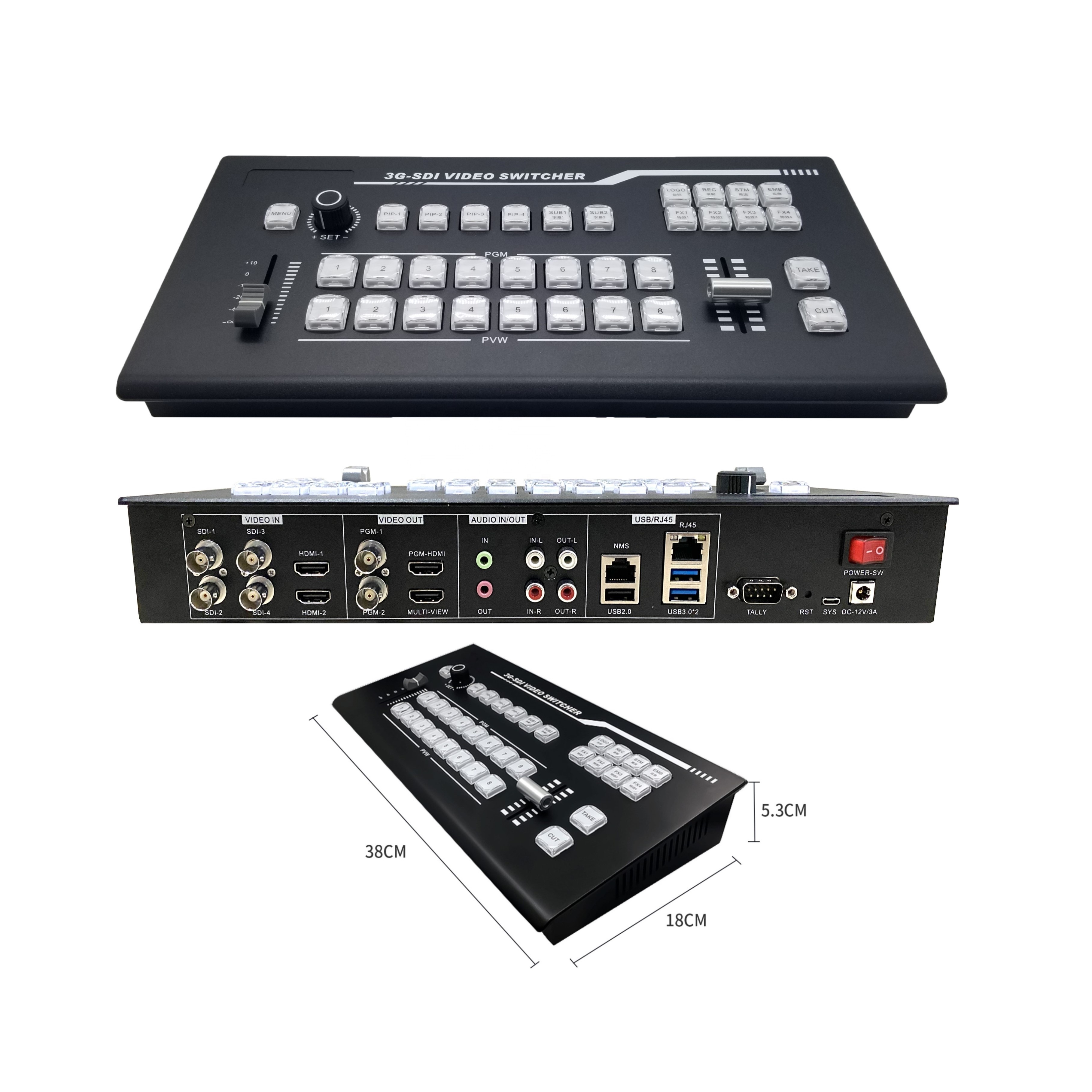 Professional video equipment full HD Portable 8-Channel HD-SDI audio mixer Video Switcher