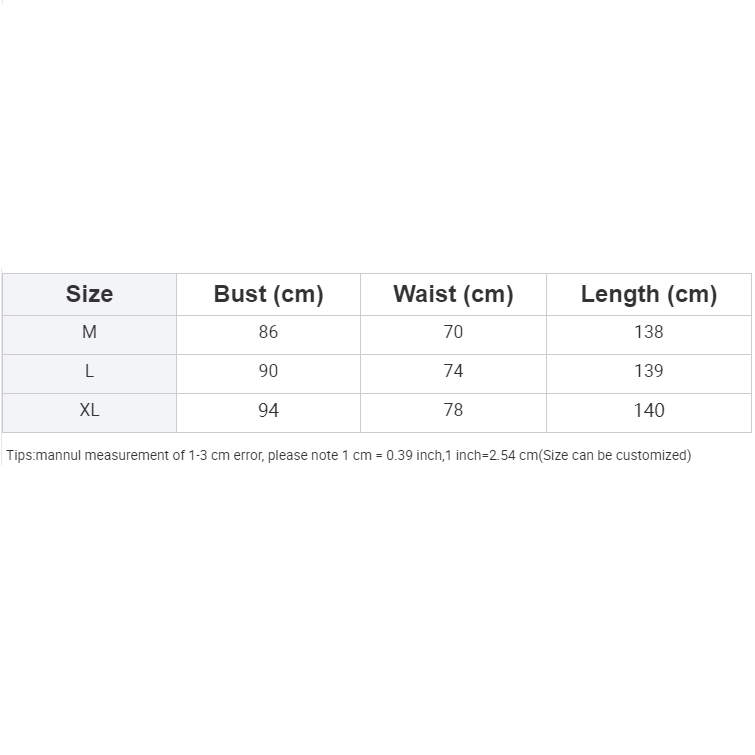 Size | Bust (cm) | Waist (cm) | Length (cm) |