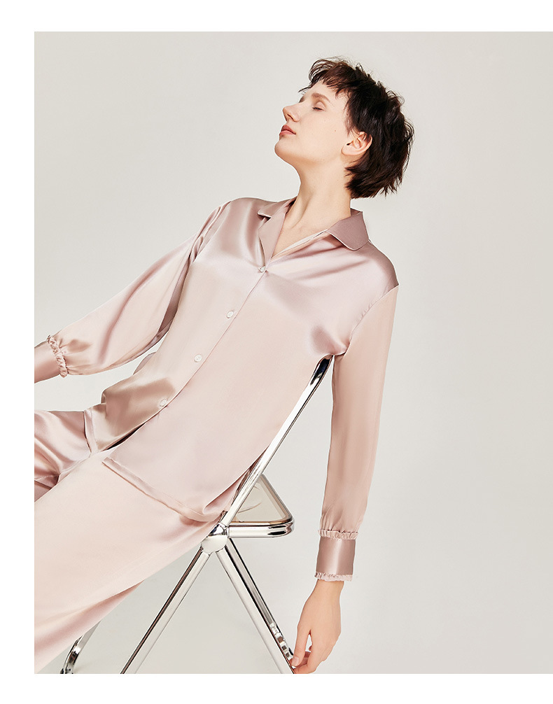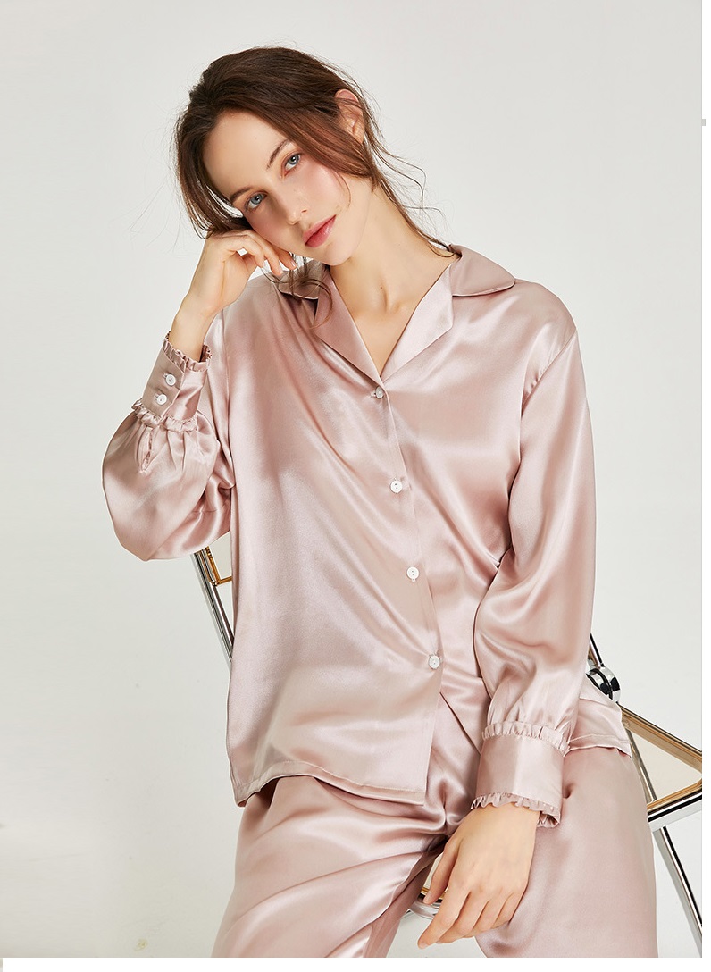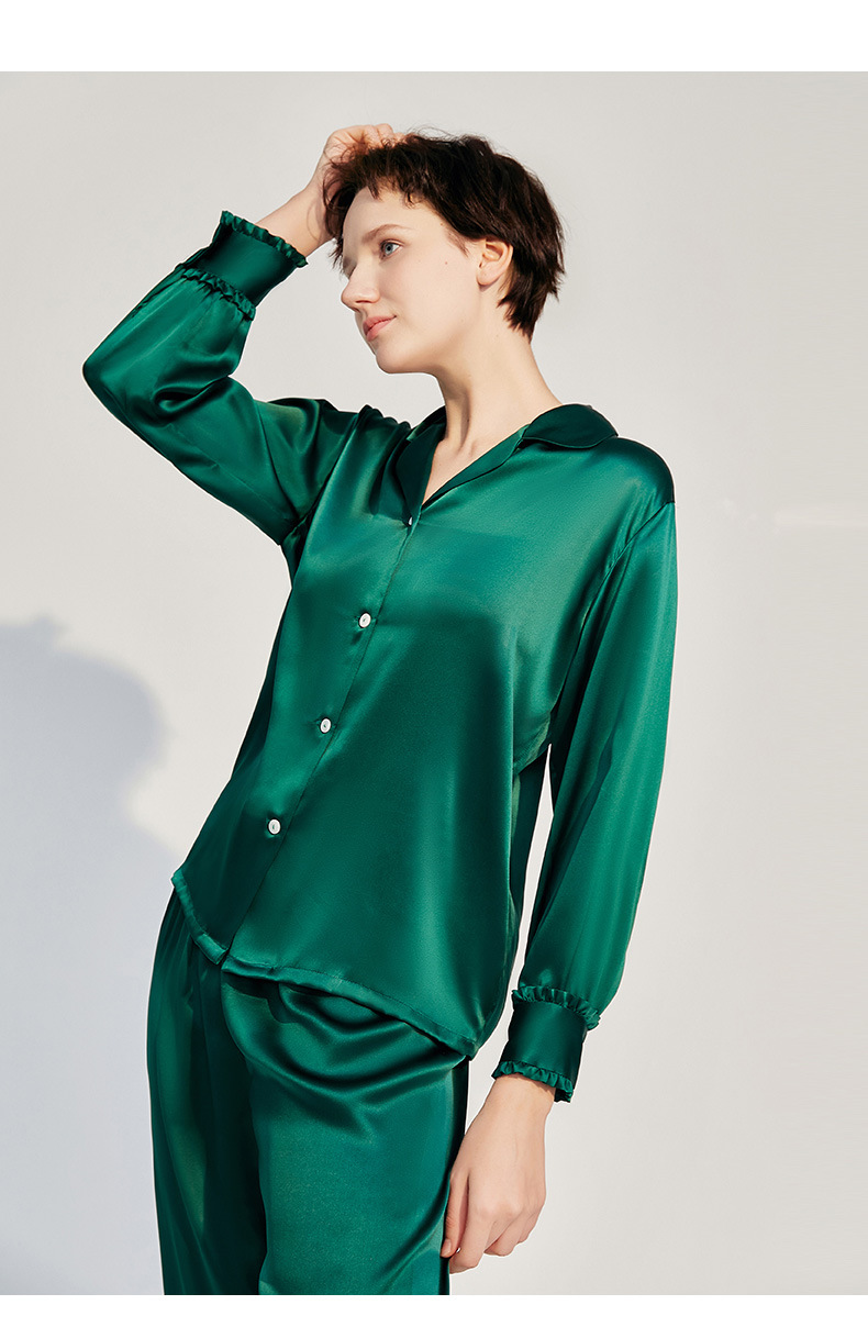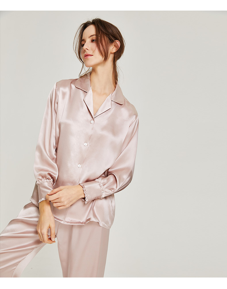 High Quality 19 Momme Mulberry Silk Ladies 2 Pieces Pajama Set Good Breathable For Women Ruffle Pyjamas