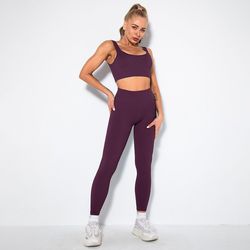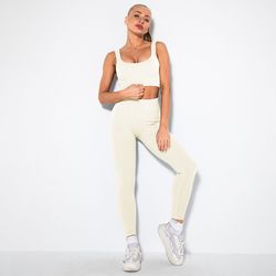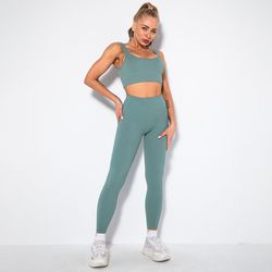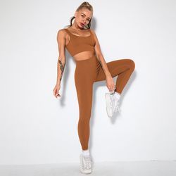 Hot Sale 2 Pcs Sets Sport Suit Fashion Sexy Seamless Women Fitness Clothing Sportswear Running Leggings Women Yoga Set