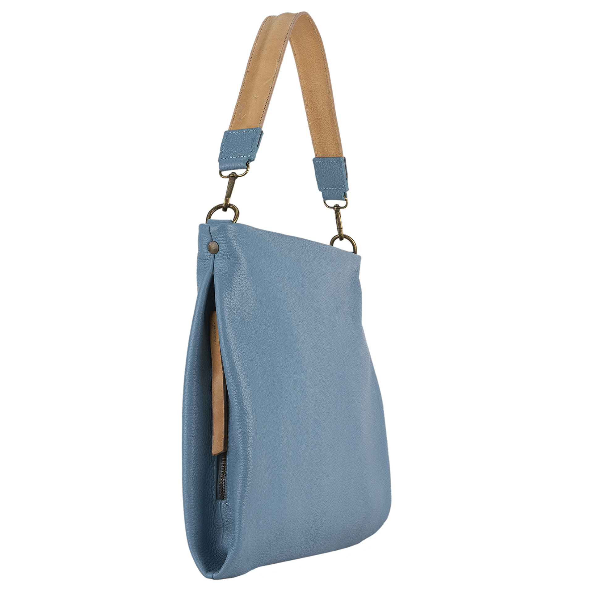 Top Seller Product Medium Size Navy Light Blue Calf Leather Satchel Handbag Useful With Side Pockets