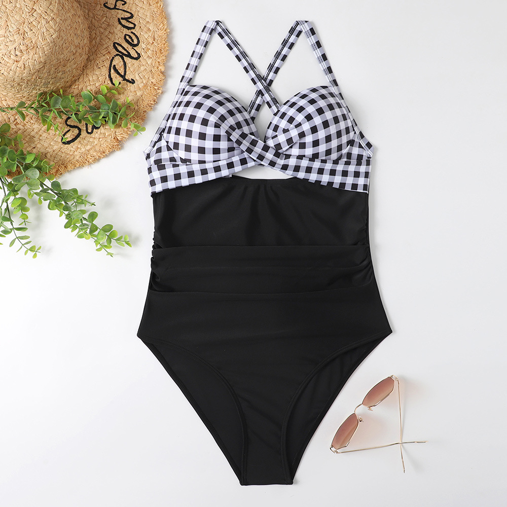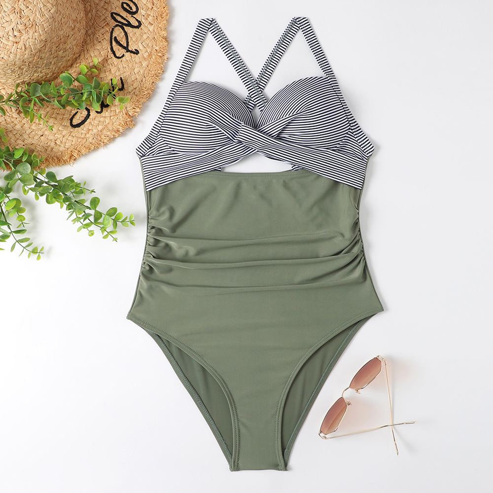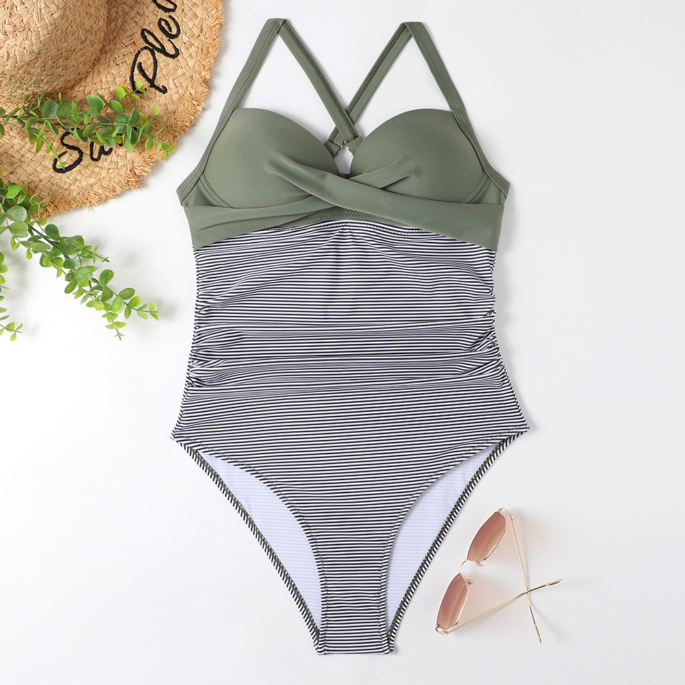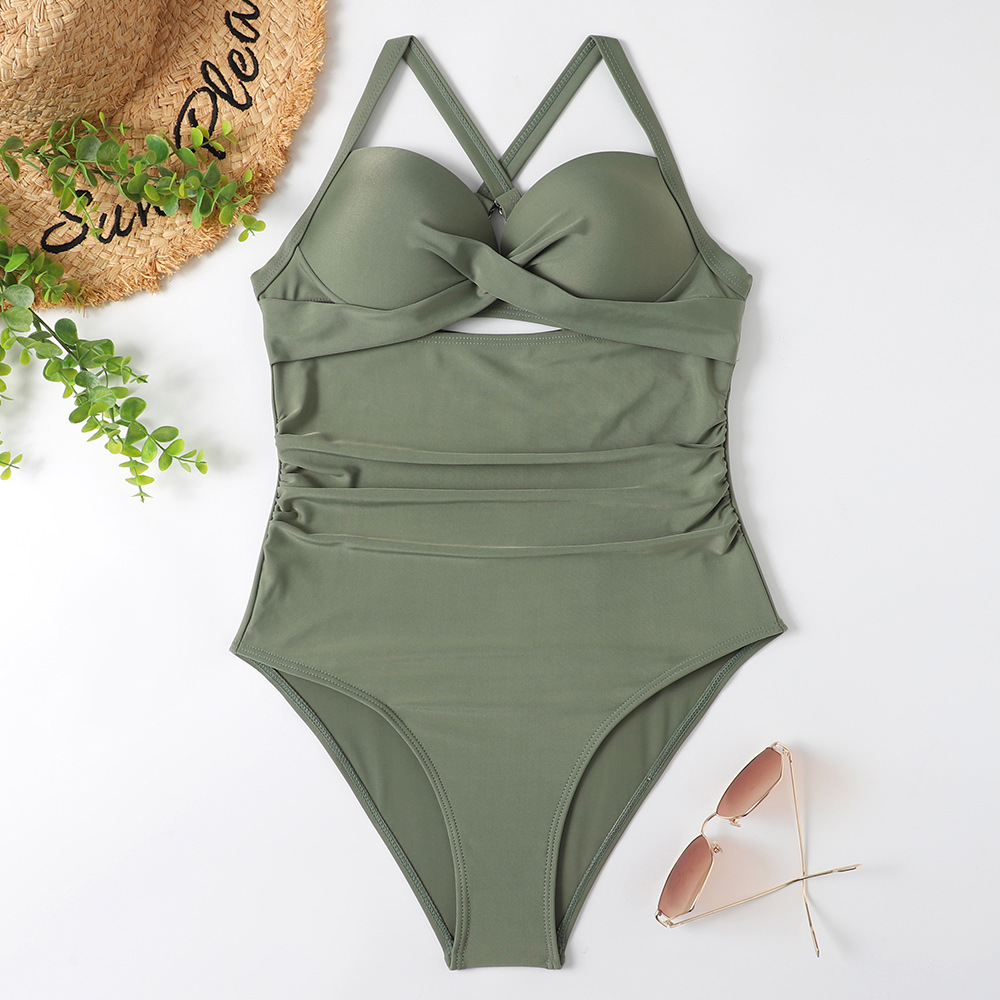 Plus Size Swimwear Women One Piece Swimsuit 2022 Retro Large One Piece Fat Bathing Suit Swimming Suit For Ladies Black Green