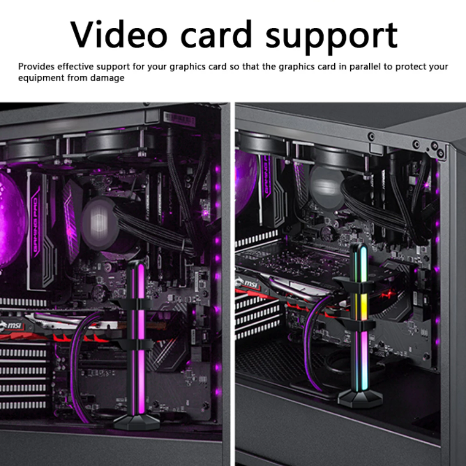 Specification: Item: video card support Material: ABS Light effect mode: ARGB Power supply: 5V Color: Black, White Interface: 5V / 3pin Main board interface: (support 5V main board light synchronization) Size: 242x87x63mm/9.53x3.43x2.48in