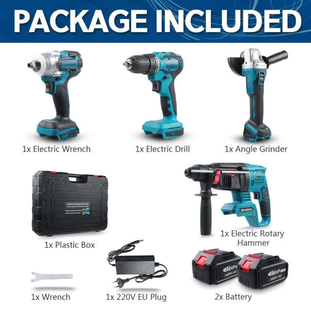 Tool Includes | Electric Hammer, Grinder, Electric Drill, Electric Wrench |