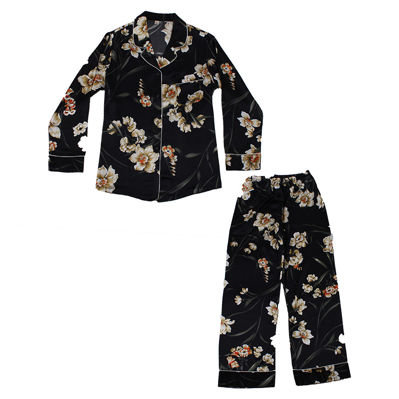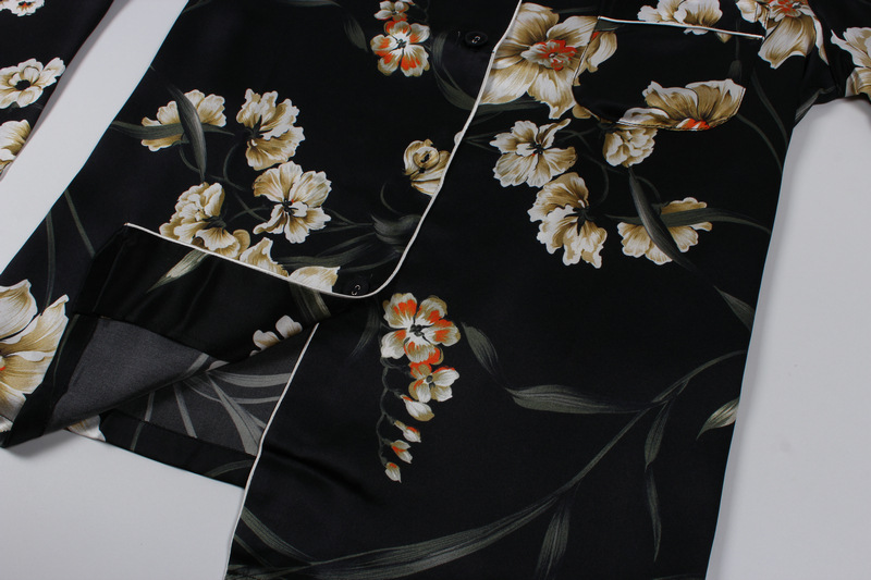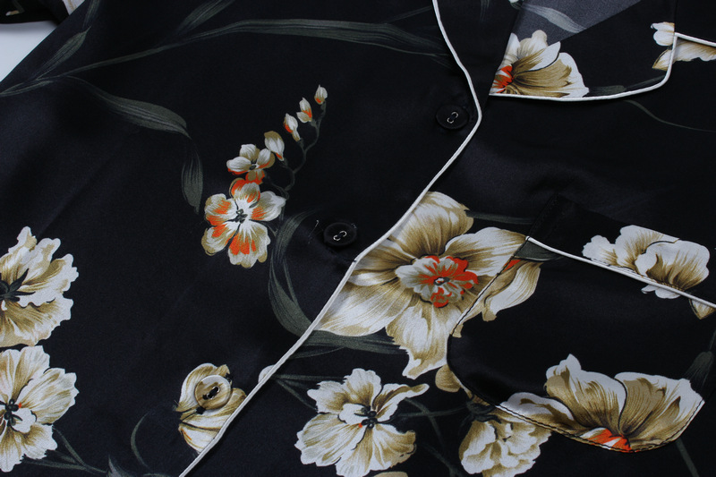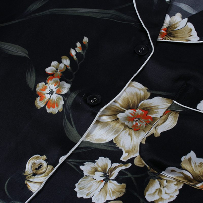 2022 New Style Women's Pure Mulberry Silk Floral Print Satin Pajamas Set Sleepwear Loungewear