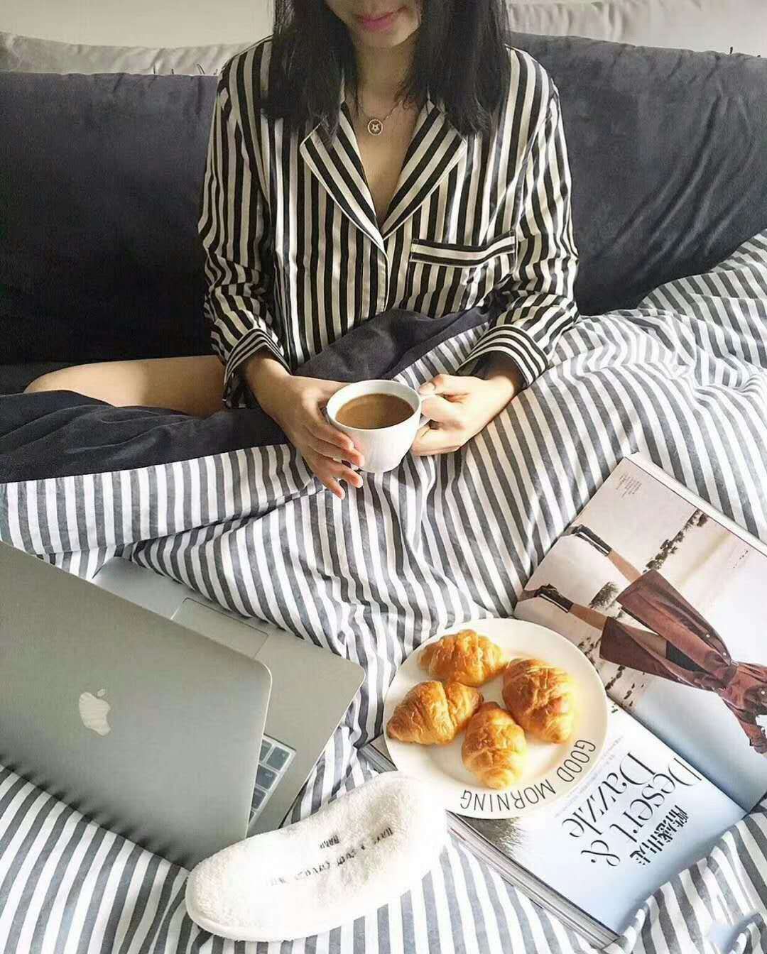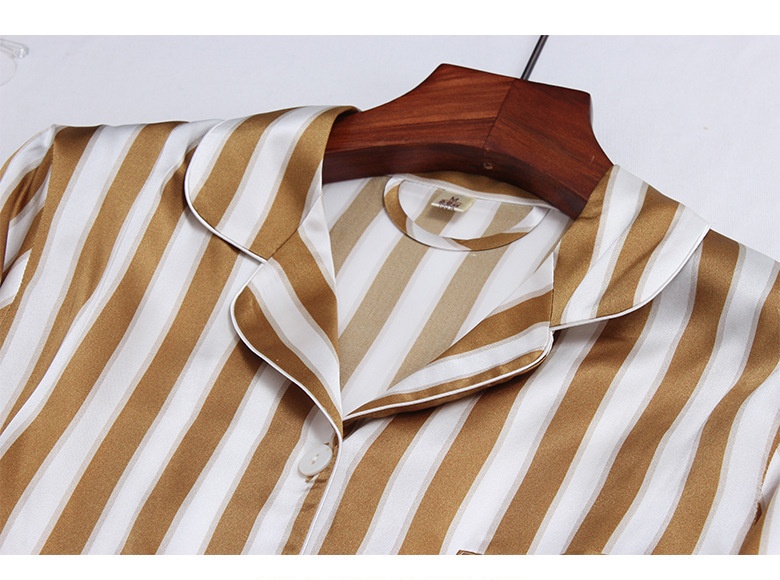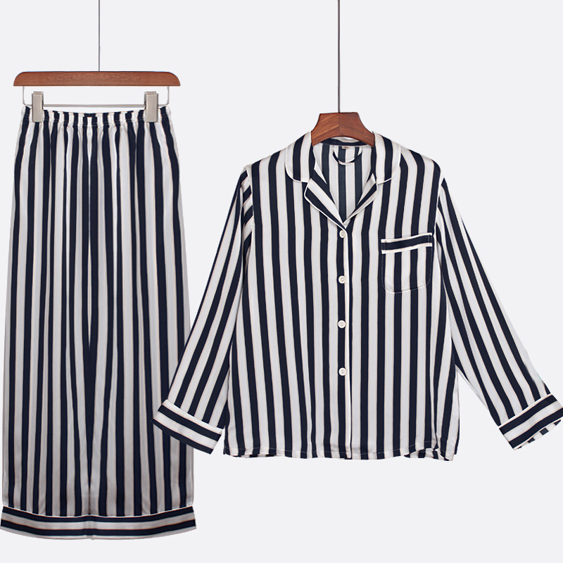 High Quality 100% Mulberry Silk Luxury Sleepwear Set Stripe Pattern Pyjamas Silk Pajamas For Women