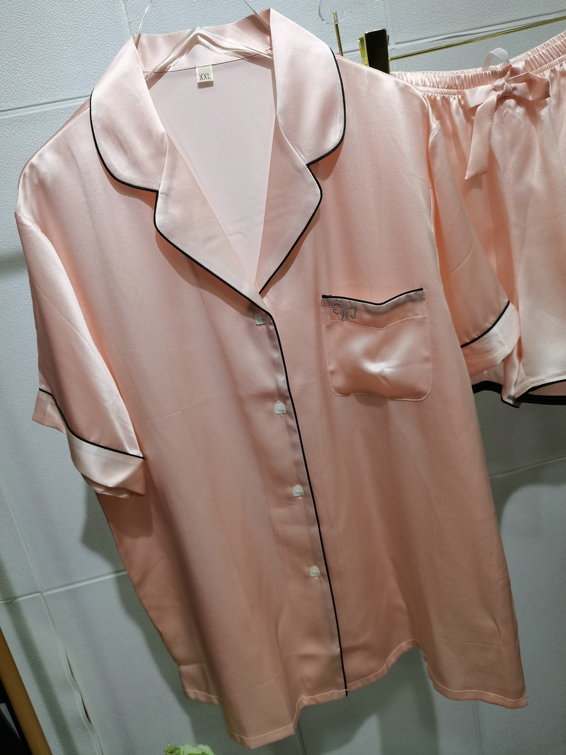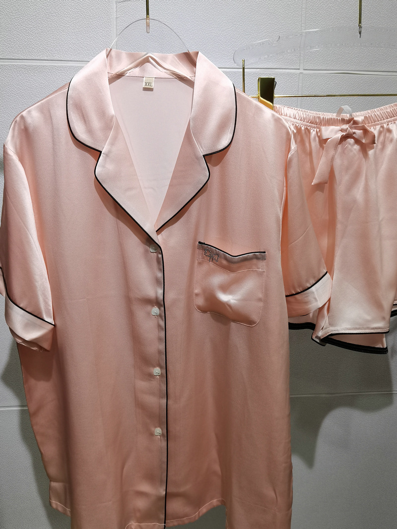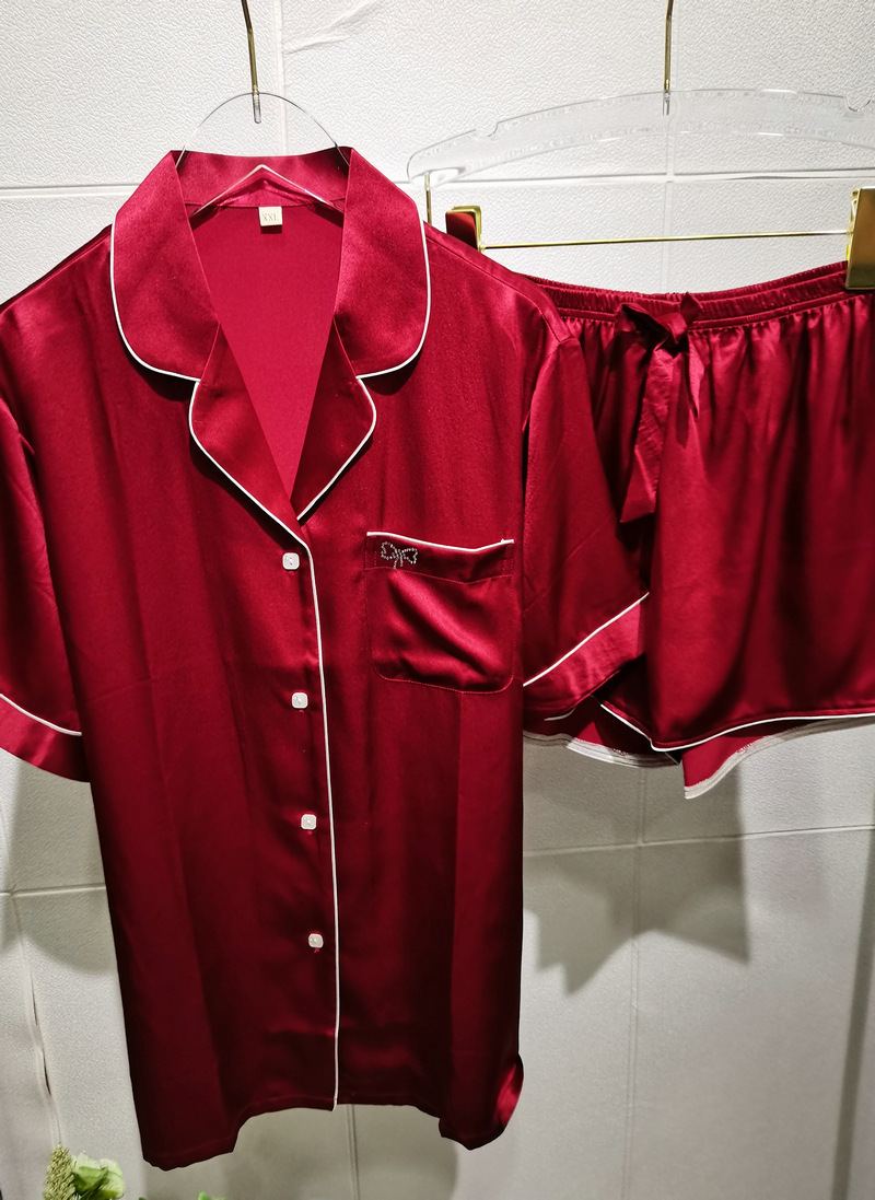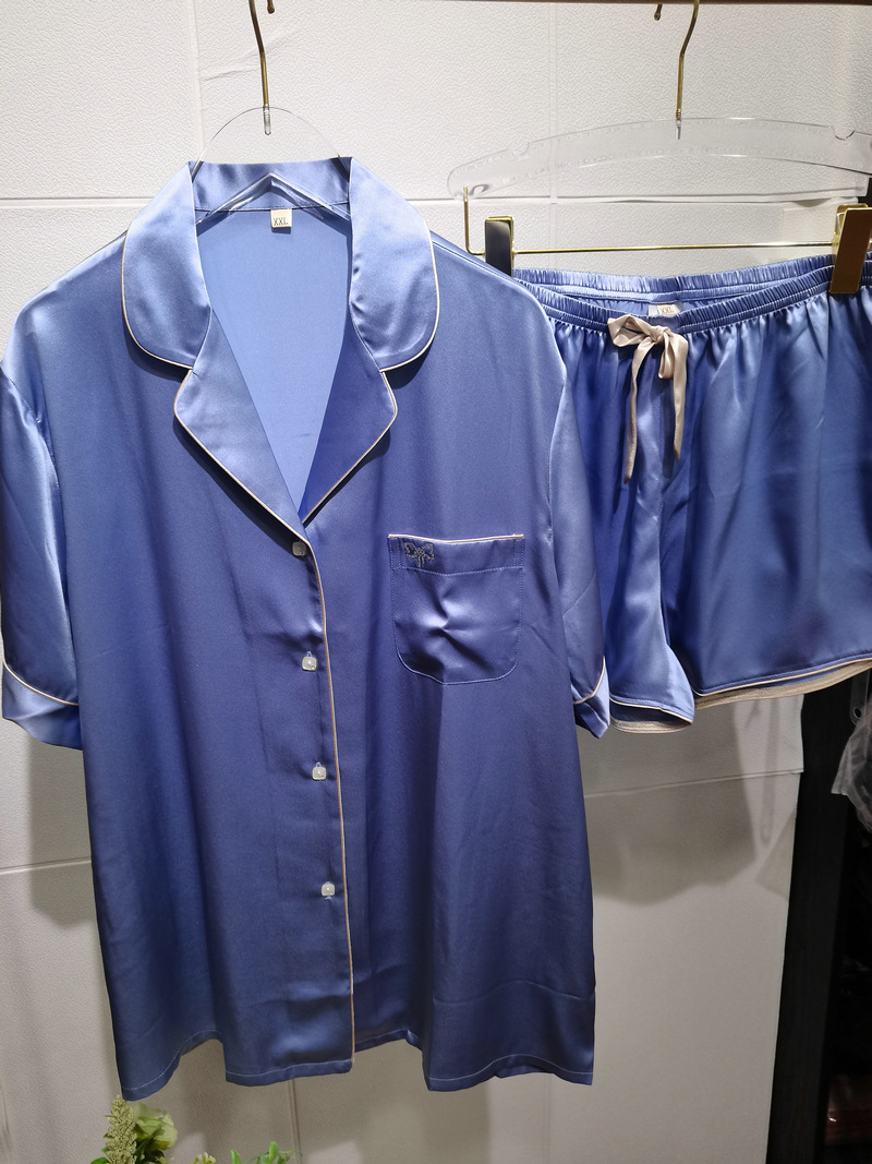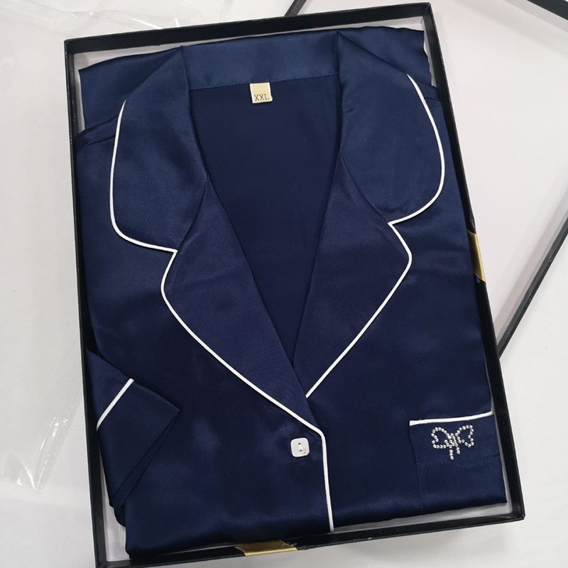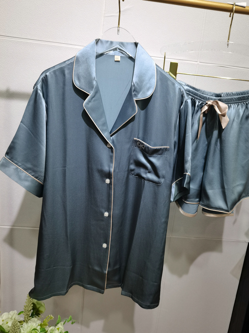 High Quality 2 Pieces Short Sleeve Plain Pajama Luxury Women 100% Mulberry Short Silk Pajamas Set