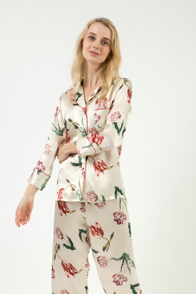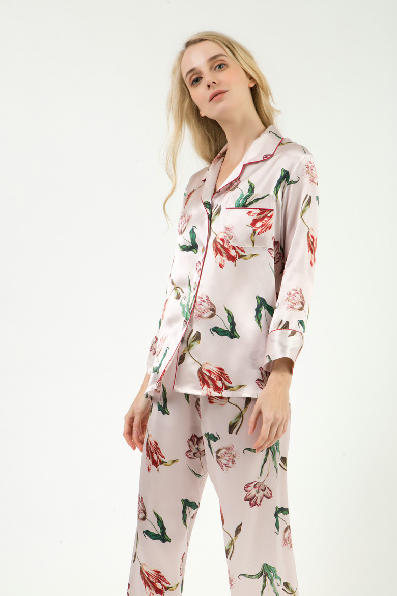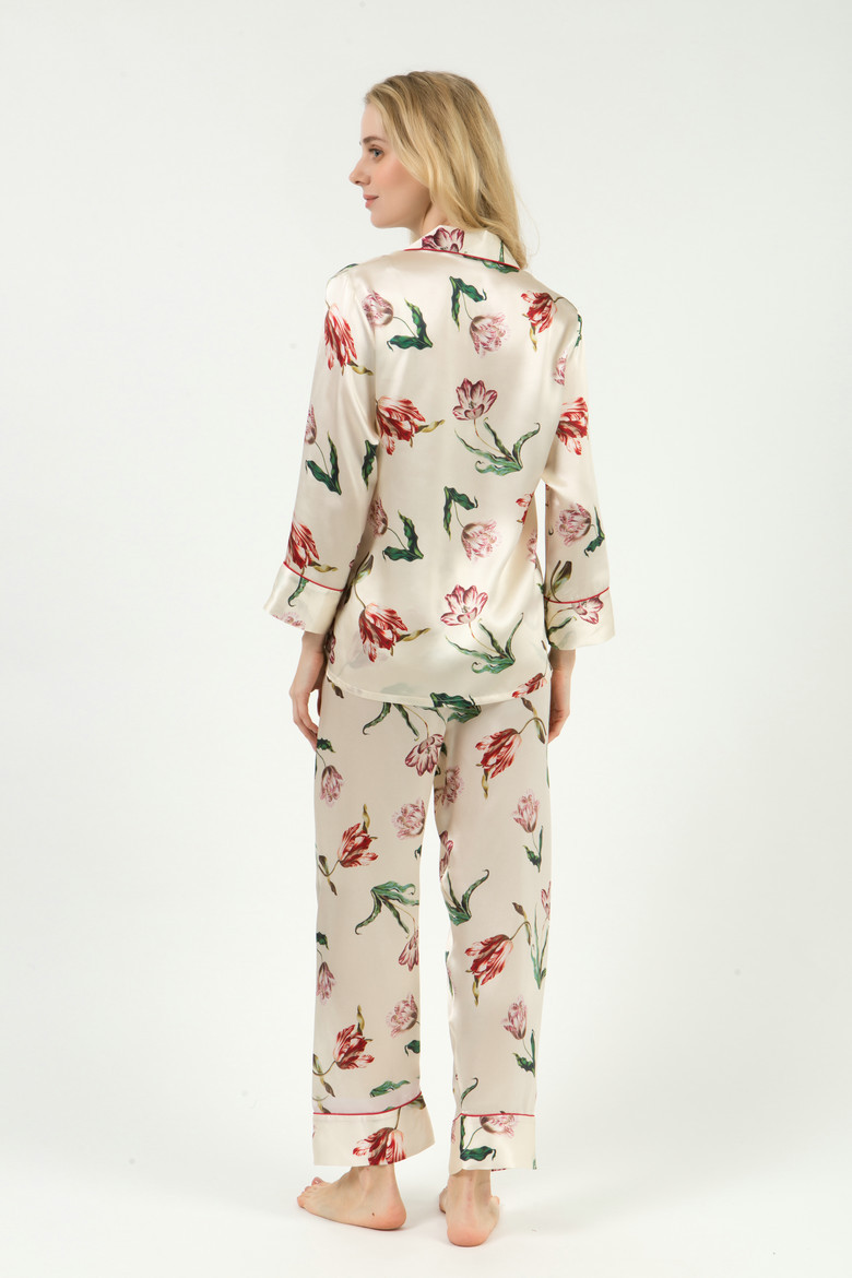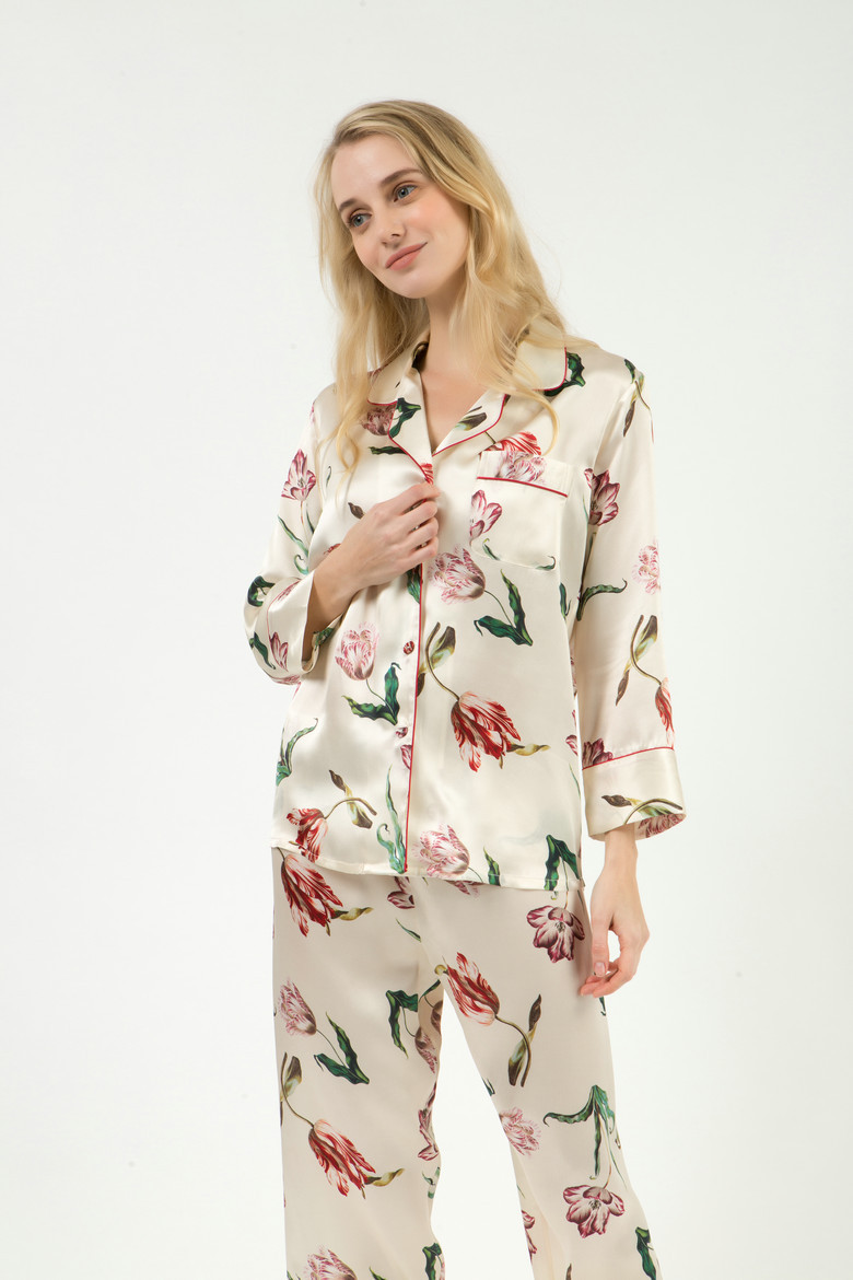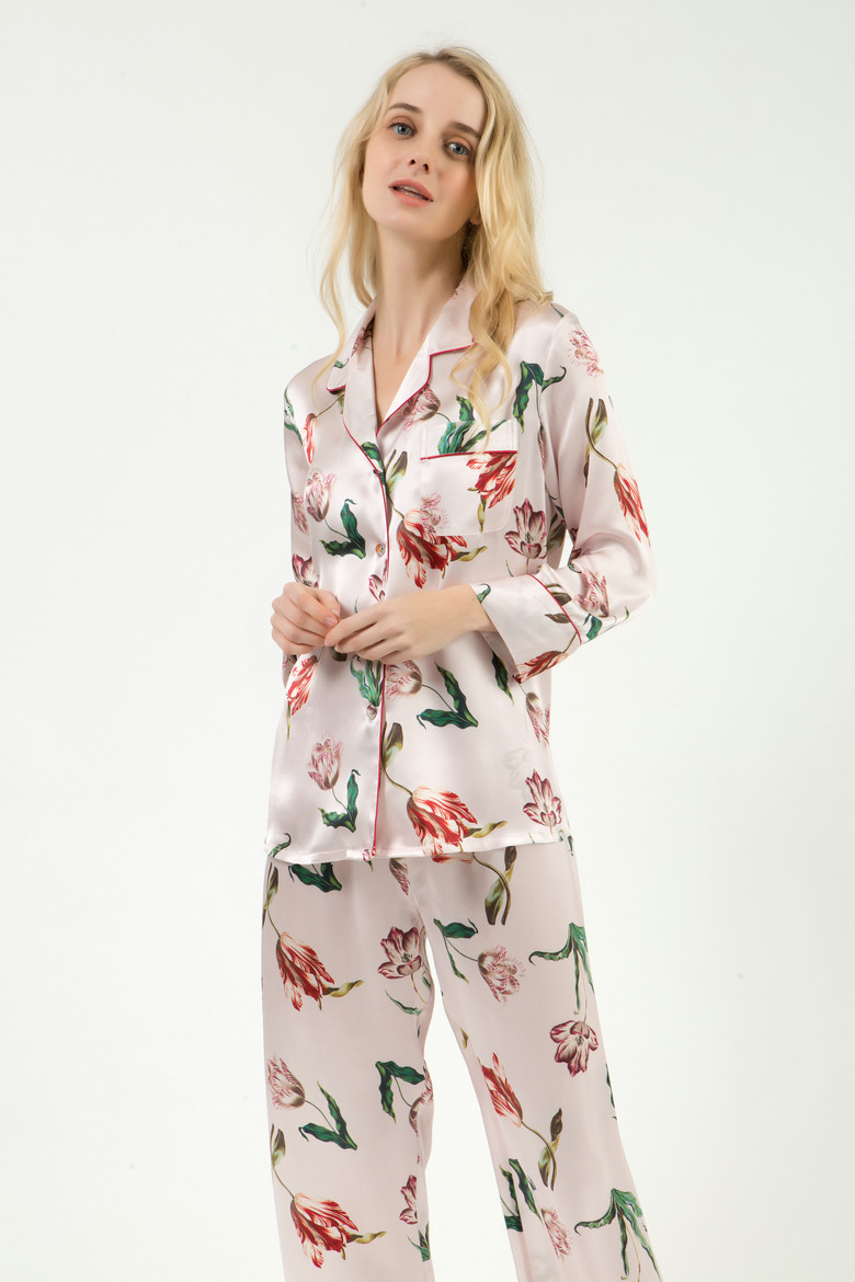 Wholesale Satin Sleep Wear 100% Pure Silk Pyjamas Set Women Silk Pajamas Long Sleeves Long Pants Set